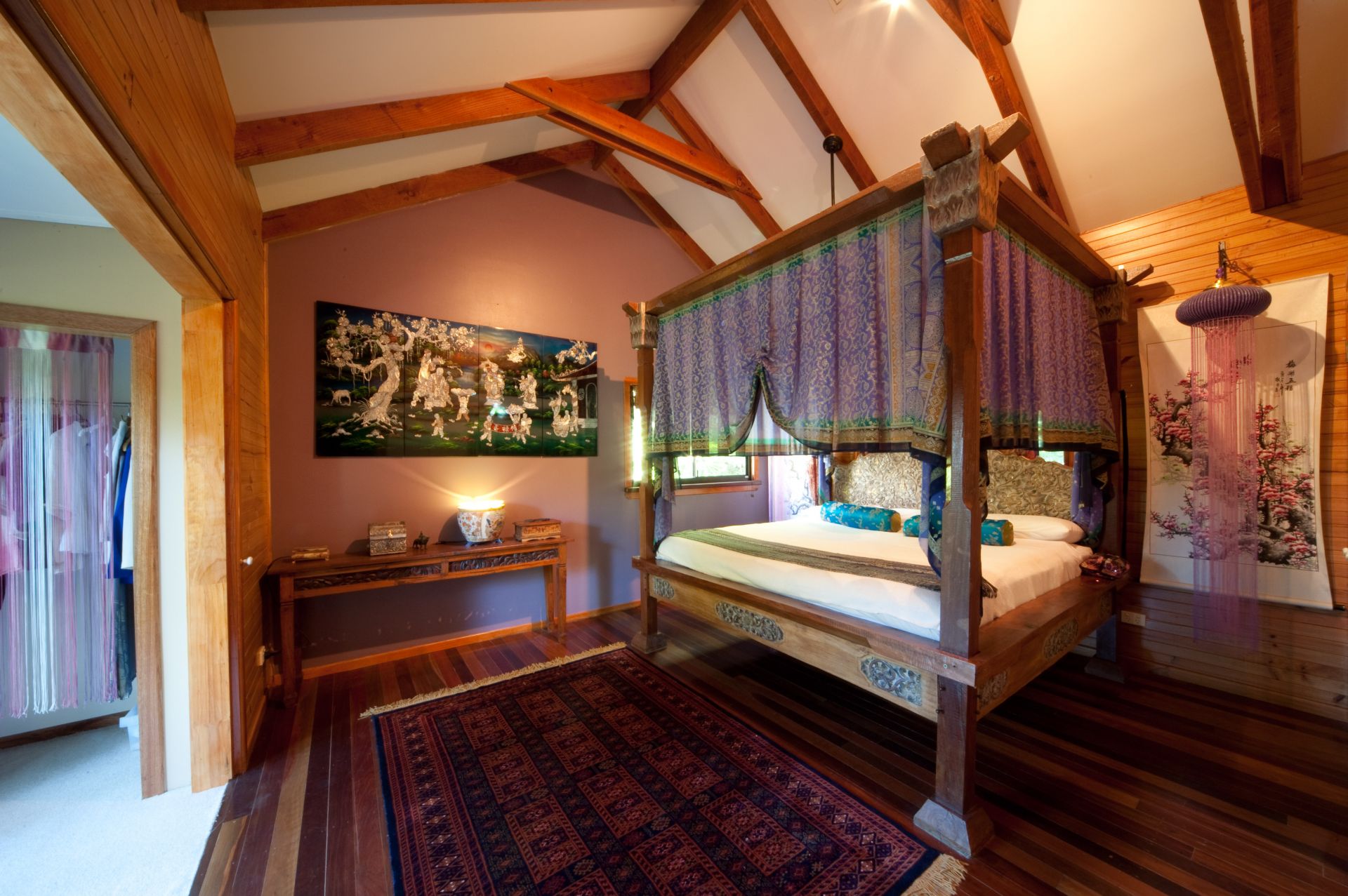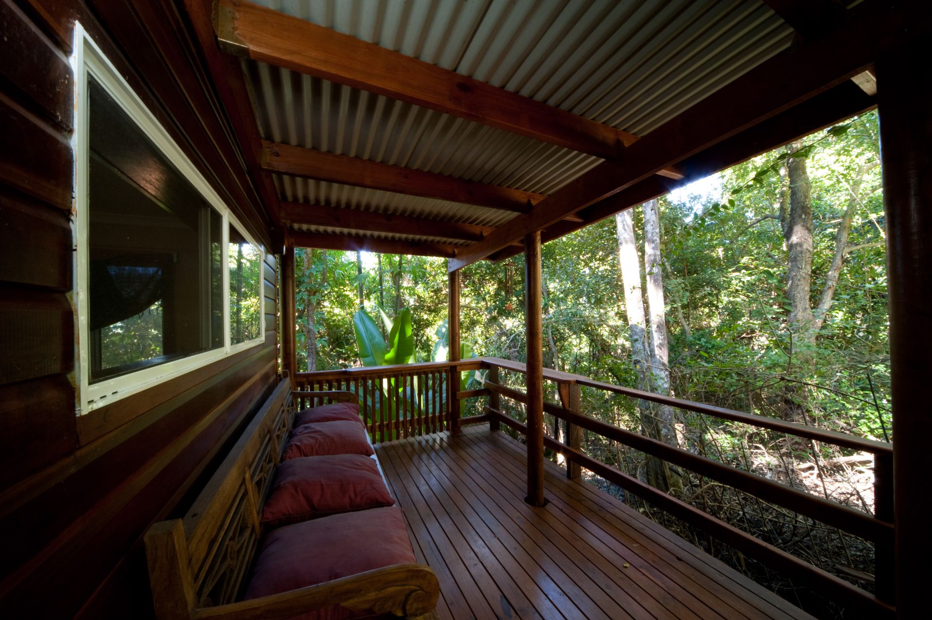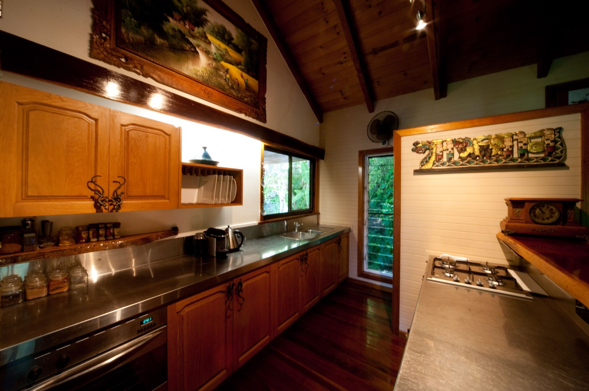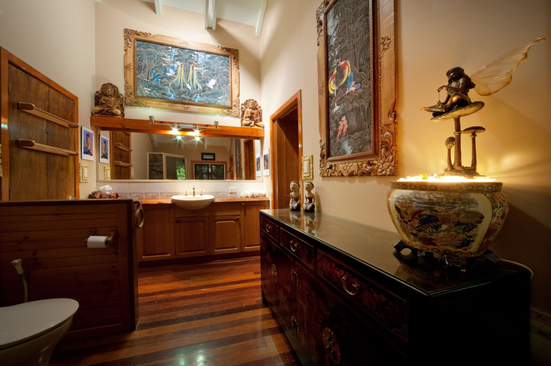 Bali Gardens, a spacious and unique character filled wooden tree top home nestled on 1507sqm of Balinese landscaped gardens.