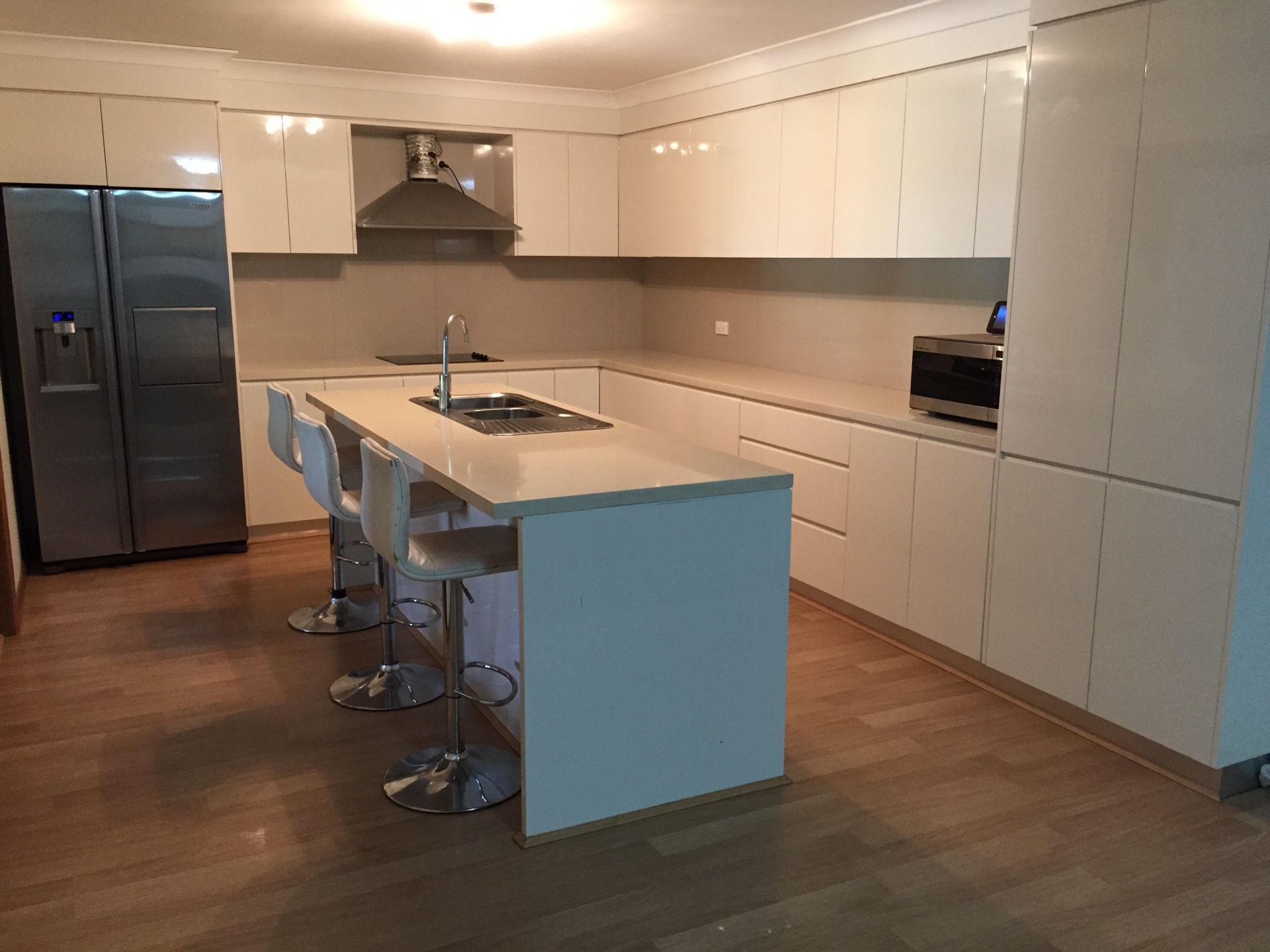 A spacious lounge room and dining area with additional lounge room that connects to the heart of the home - the kitchen. This is a newly renovated space with new timber laminated flooring as well as white polyurethane kitchen and stone bench tops throughout.