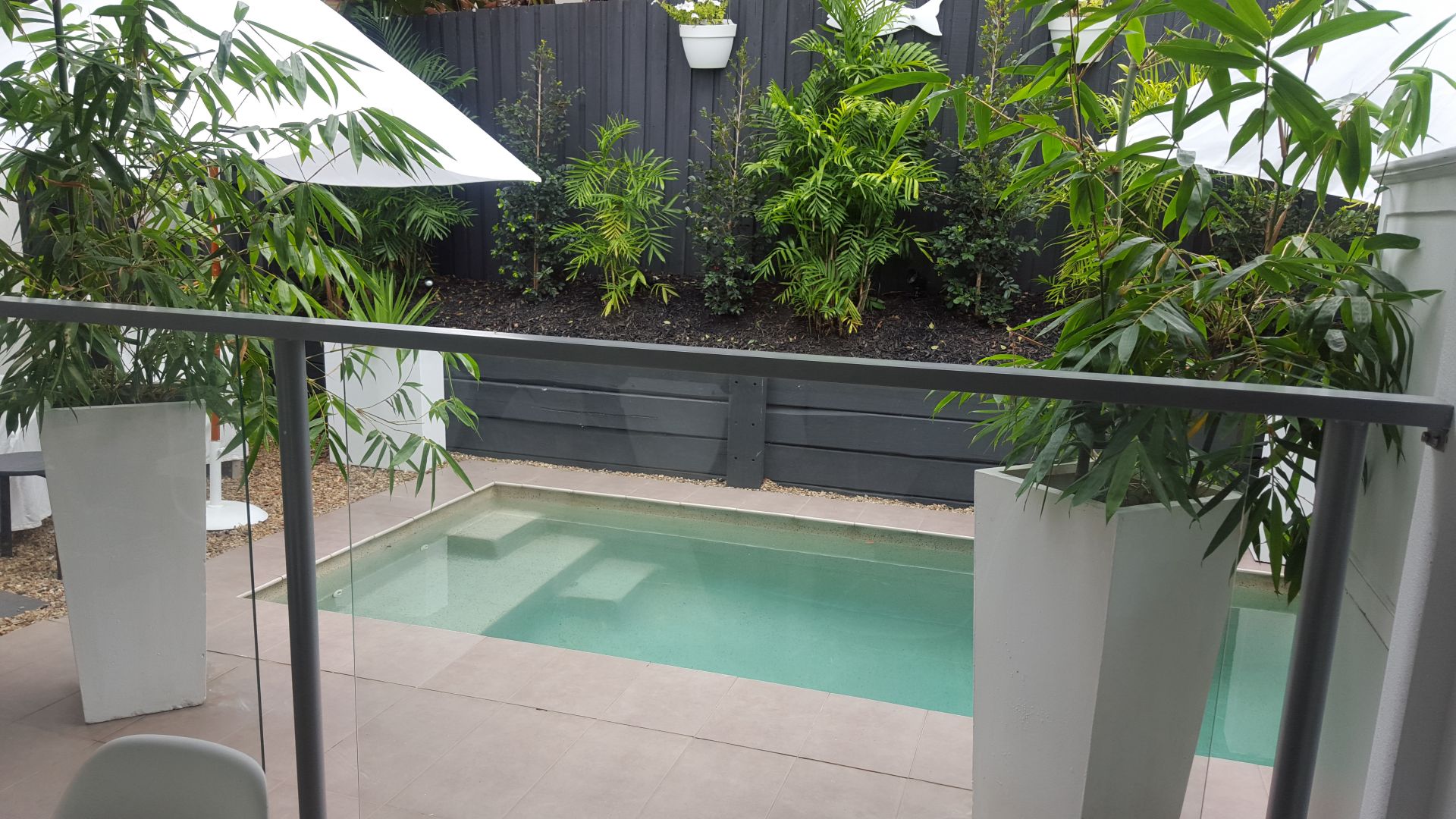 The plunge pool is a perfect low maintenance size and so perfect for cooling off and to enjoy lazing around it during the warmer months with friends and a cocktail!