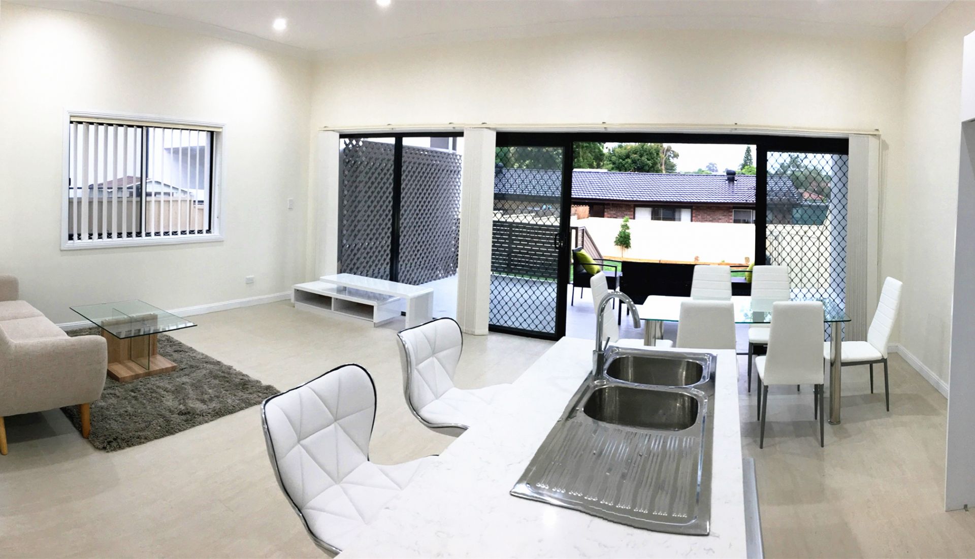 - Extensive open plan living and dining area flowing out to a full width undercover alfresco entertaining area
