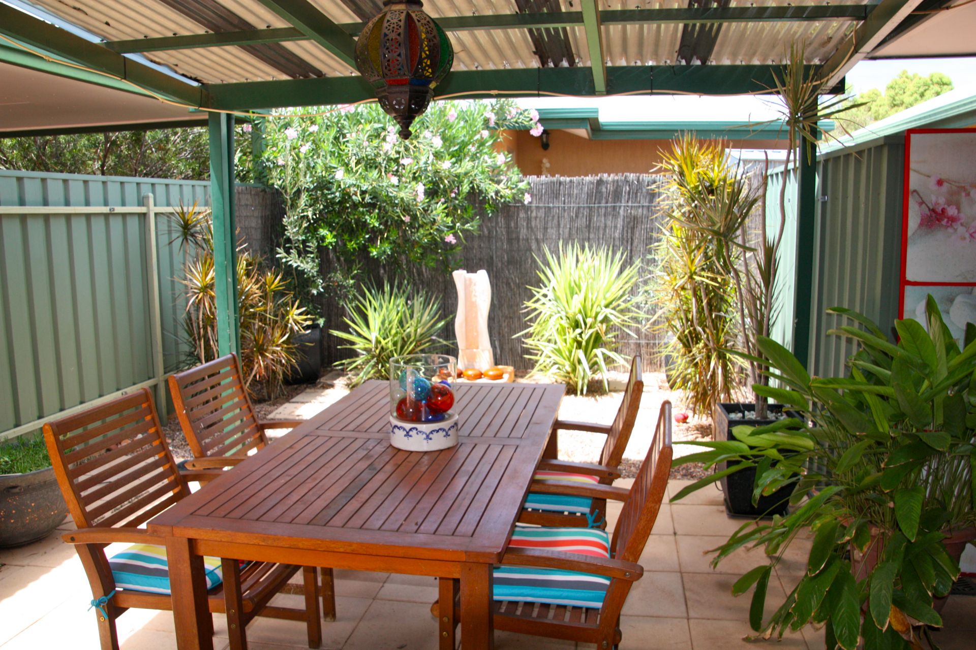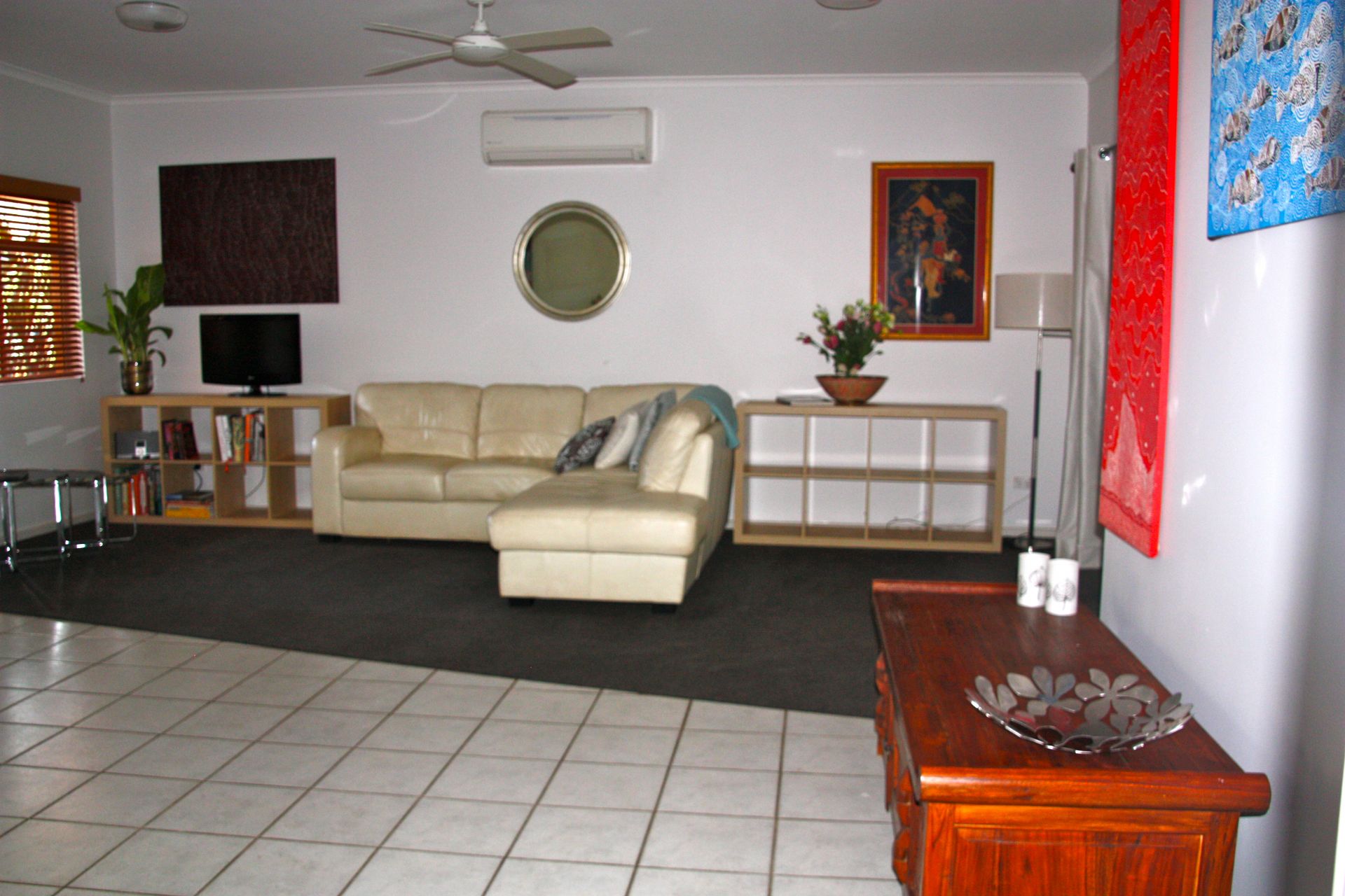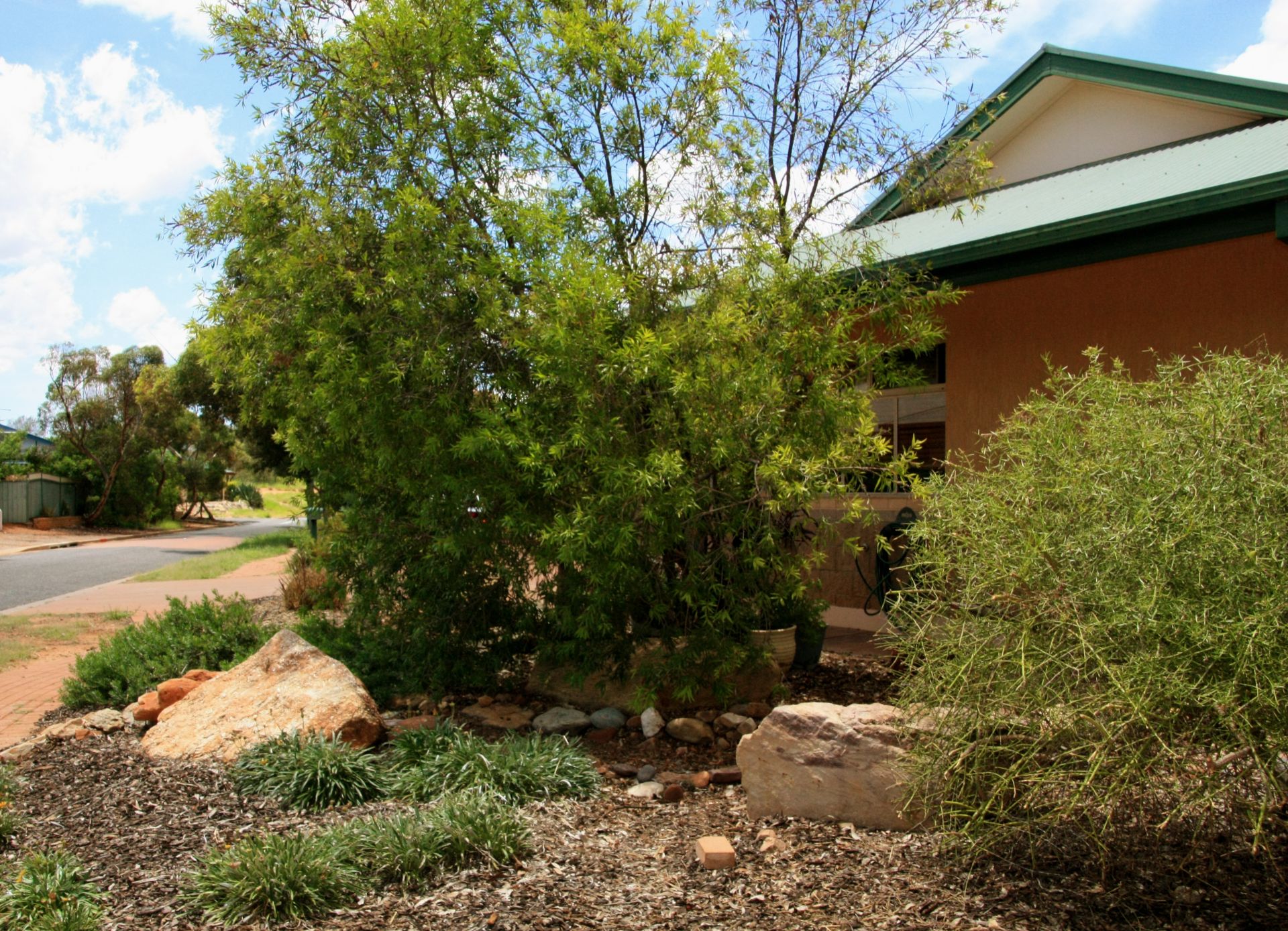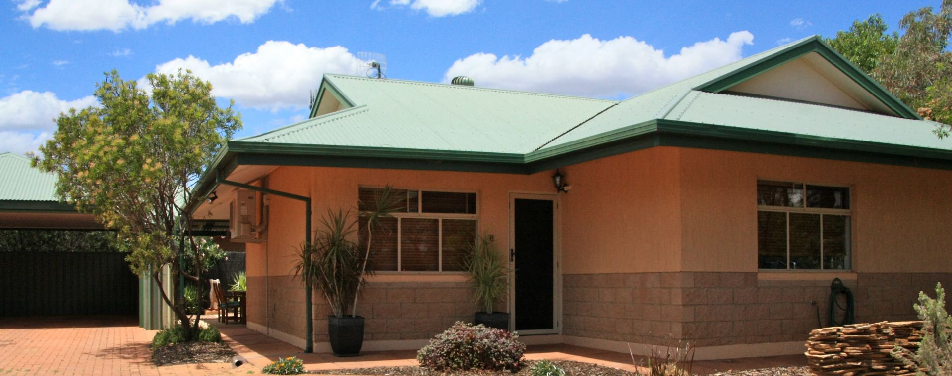 Outside features two courtyard areas, fully paved, with sheltered undercover and greenery for privacy and shade. Native plantings and a reticulation system support a low maintenance garden and relaxed outdoor living space.