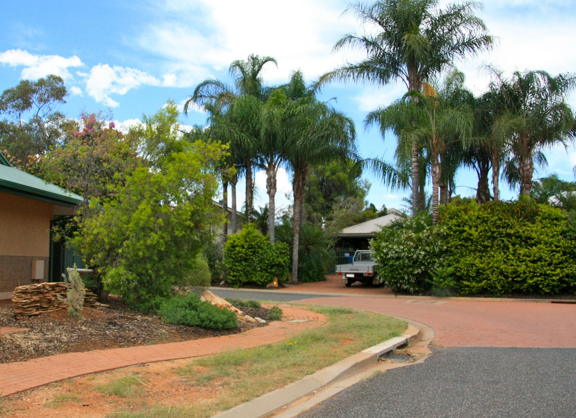 A double-shared carport is attached with extra parking space for visitors.