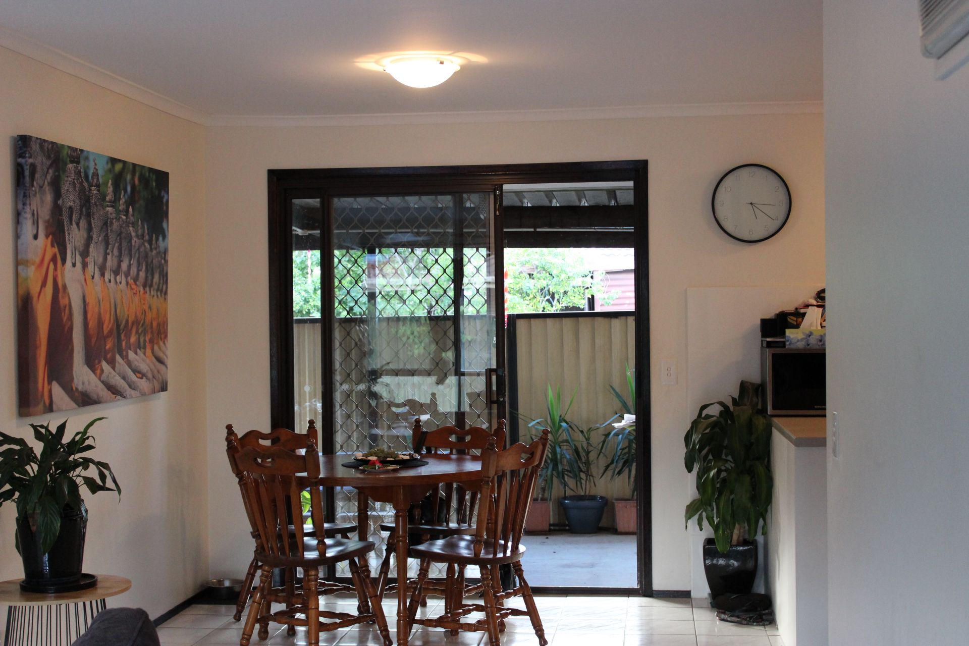 Lounge, dining and wet areas are tiled for easy upkeep.