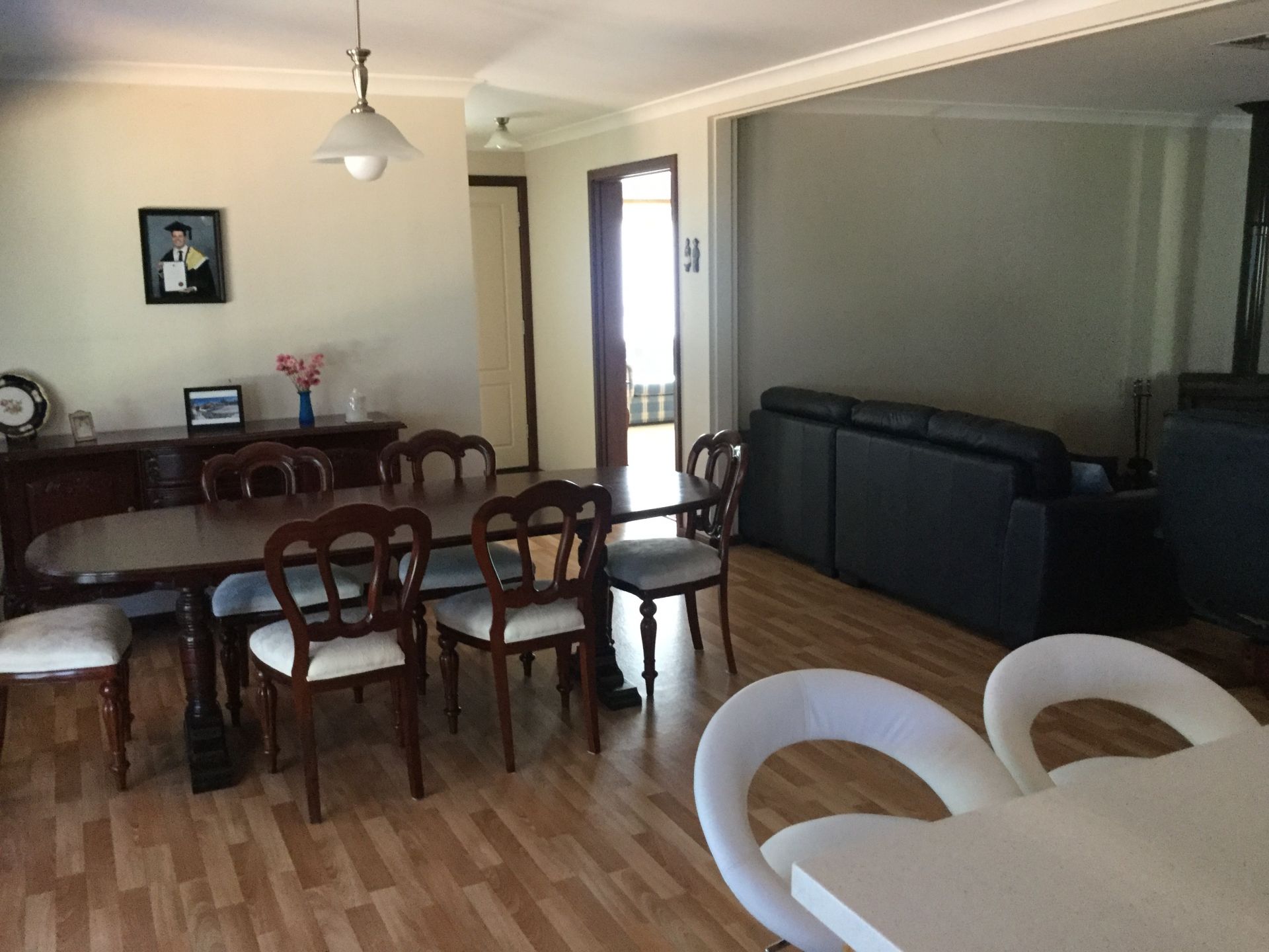 This is a 3 bedroom plus office / 4th bedroom, 2 bathroom house with seperate toilet off laundry, large lounge, family room, nice kitchen only approx 12 years old in very good condition. It has a garage with remote controlled door attached to the house with lovely out door area at rear and a very large west facing verandah. Also included is approx 168 sq m of shed space which includes a granny flat complete with kitchen and ensuite.