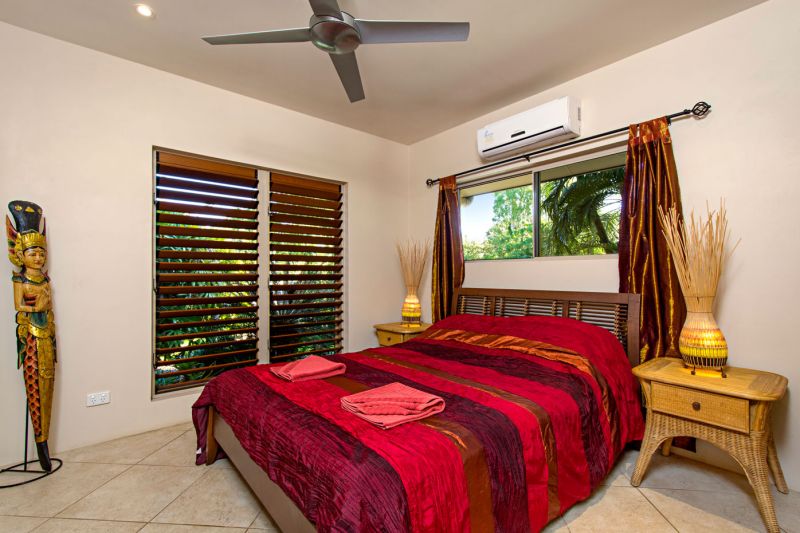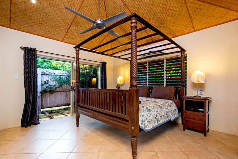 Features include peaked bamboo lined ceilings, ensuite, tiled throughout, air conditioned bedrooms, swimming pool, fully fenced, established gardens and comes fully furnished!