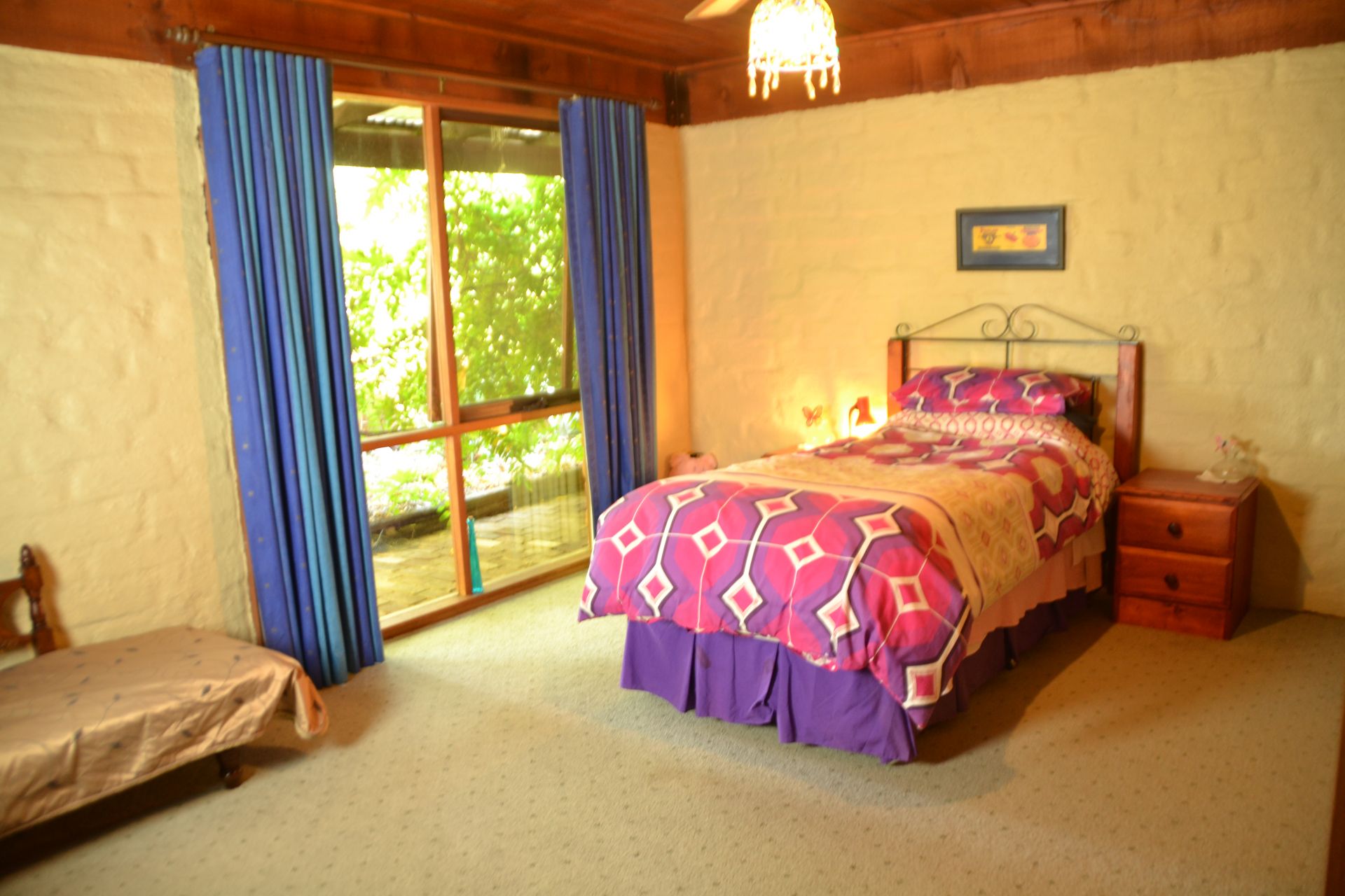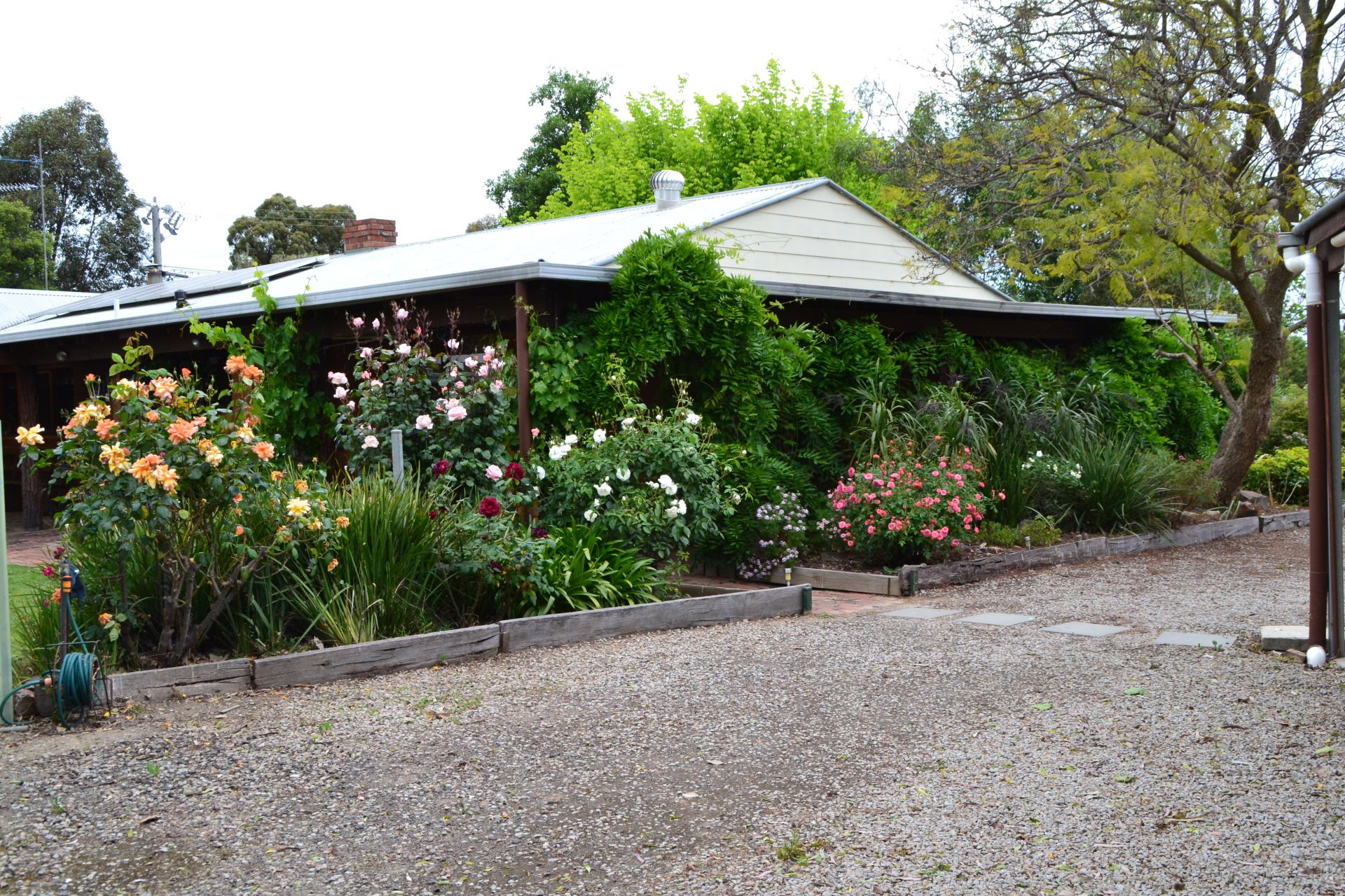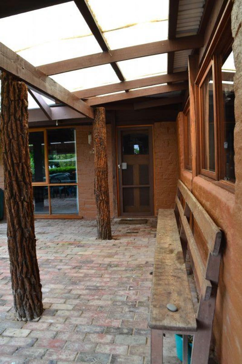 This home, filled with a rustic charm, will create many surprises for visitors. This is not your standard home- no plaster in it anywhere! The 100 year old recycled Baltic pine ceilings throughout, create a lovely warm ambience. All internal walls are either mud brick or recycled bricks. Ironbark posts from Rushworth support the surrounding verandah.