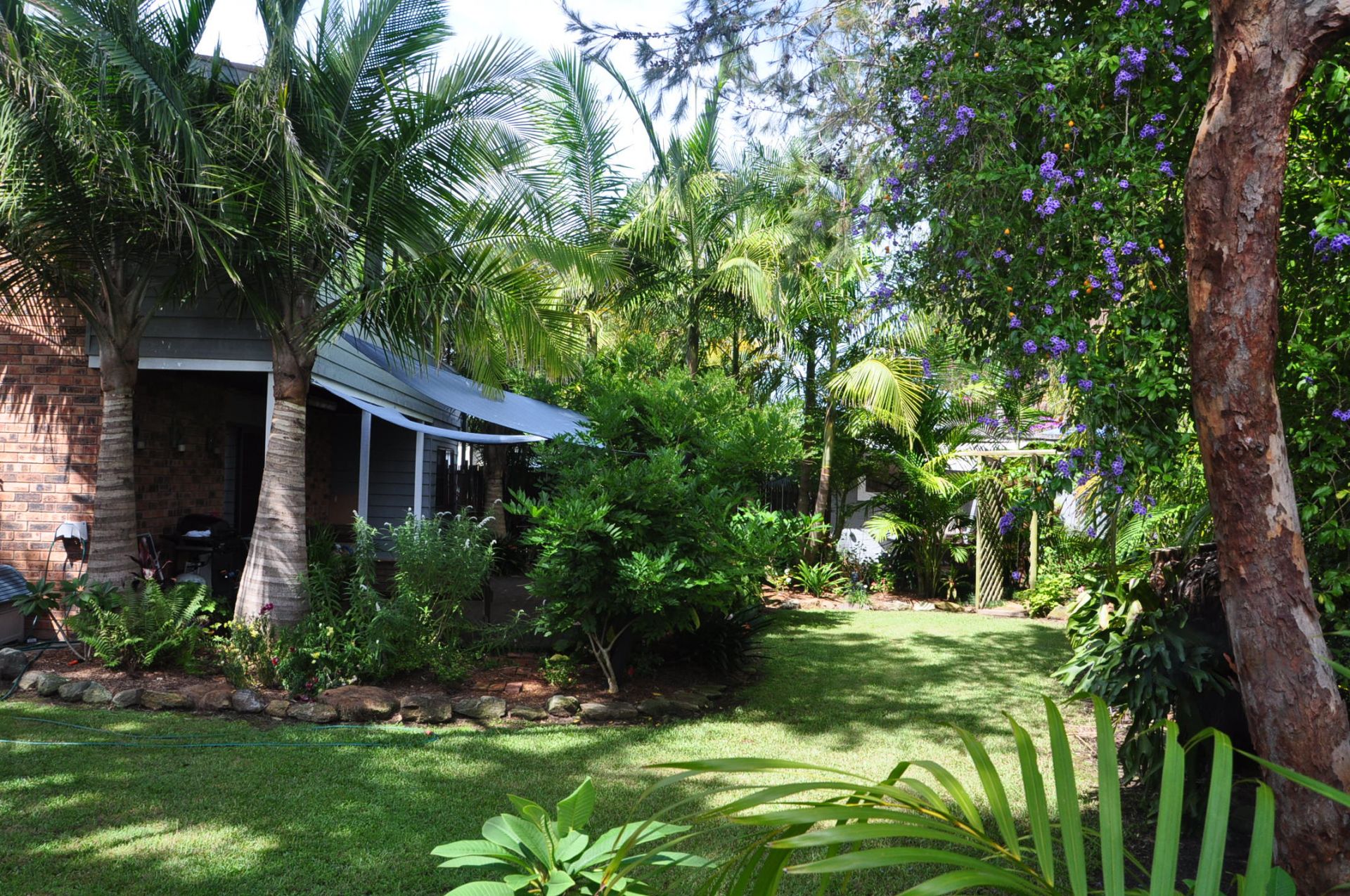 The ground floor features a new galley style kitchen complete with new appliances, with a open plan dining area that leads onto a L shaped lounge and living area which features a slow combustion heater and R/C air conditioner. There is a internal laundry with the 2nd W.C. Leading off from the lounge through a sliding door there are 2 separate decks surrounded by tropical inspired gardens.The first is a large partly covered deck that has enough room for entertaining family and friends. The 2nd deck is complete with a relaxing water feature, the ideal spot to sit and have lunch and enjoy the garden and the native birds.