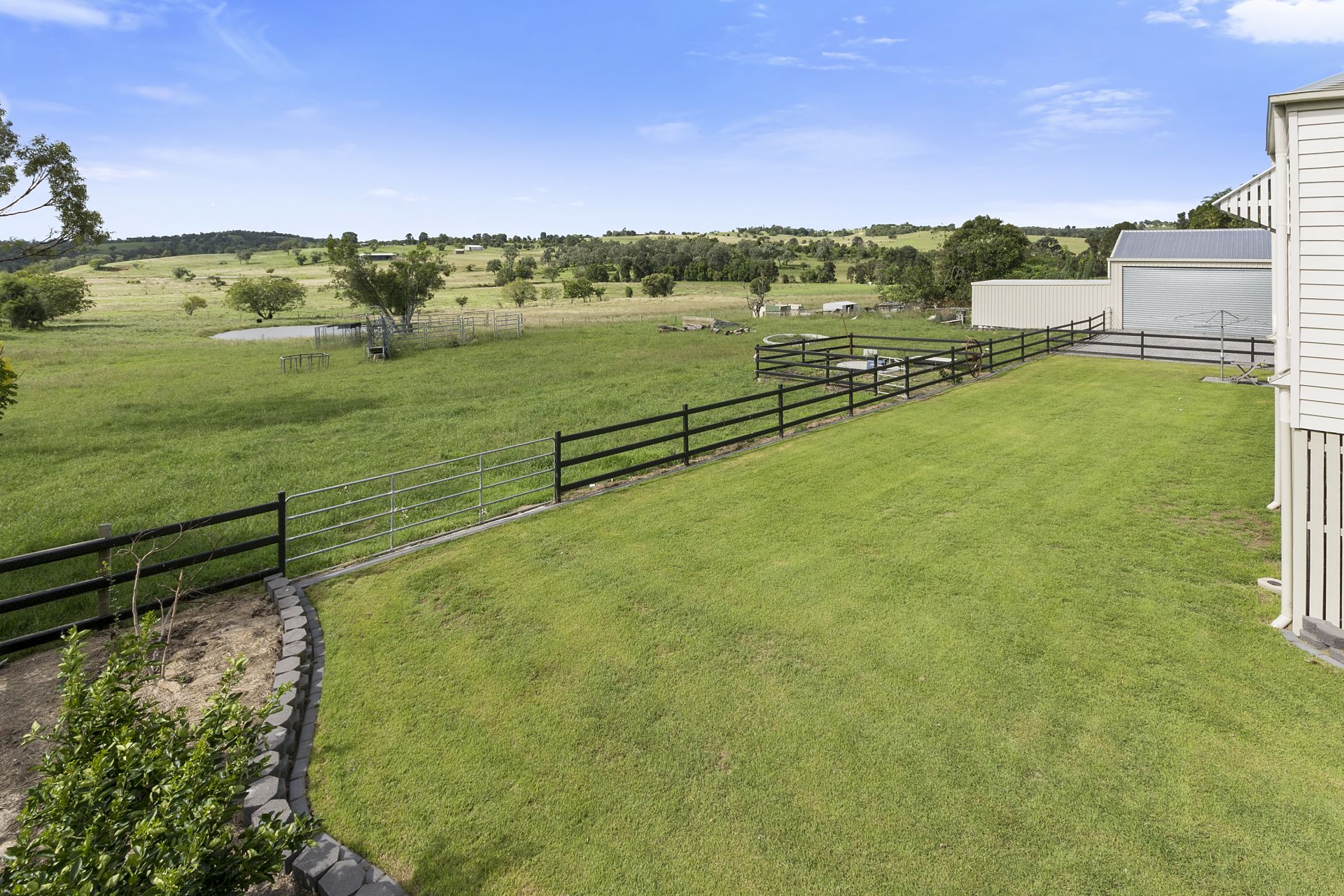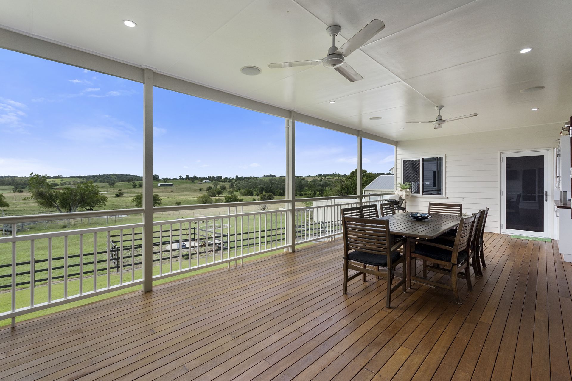 In a quiet cul-de-sac street on a fully fenced 4 acre block with town water and a dam. A huge 6 Bay colour bond shed sits on a fully exposed aggregate driveway with a second driveway for easy access to your back paddock. Also there is a machinery/feed shed with round cattle yard and loading ramp. House has 4 bedrooms with and extra bedroom/office under. Polished timber floors throughout with a Huge Cinema room including 120" Fixed Projector Screen, Digital Surround Sound and more all fixed in a built in entertainment unit. To make life easy there is also a built in vacuum maid. The kitchen Boasts a large 5 burner Stainless Steel gas cook top with electric oven, walk in pantry and ceasar stone bench tops. A large deck on the back with fridge and outdoor cabinetry overlooks farm paddocks and from the front verandah views of the Cunninghams Gap can be seen. The In ground pool area has its own rustic entertainment shed and wood pizza oven. Other features include Fully Ducted Air Conditioning, Ceiling Fans, Wood Fire Place, High Ceilings & Large Solar Panel System.