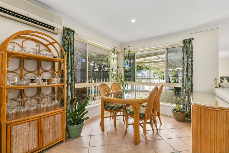 The refreshed kitchen with updated appliances is central to the home and overlooks the dining and informal lounge. Large glass doors and windows from these rooms appear to bring the covered entertainment area and pool into an inside/outside feature. Make dinner while you watch the ripples or check the kids are behaving in the pool! The spacious formal lounge flows off the dining area and looks out into a large established private front garden.