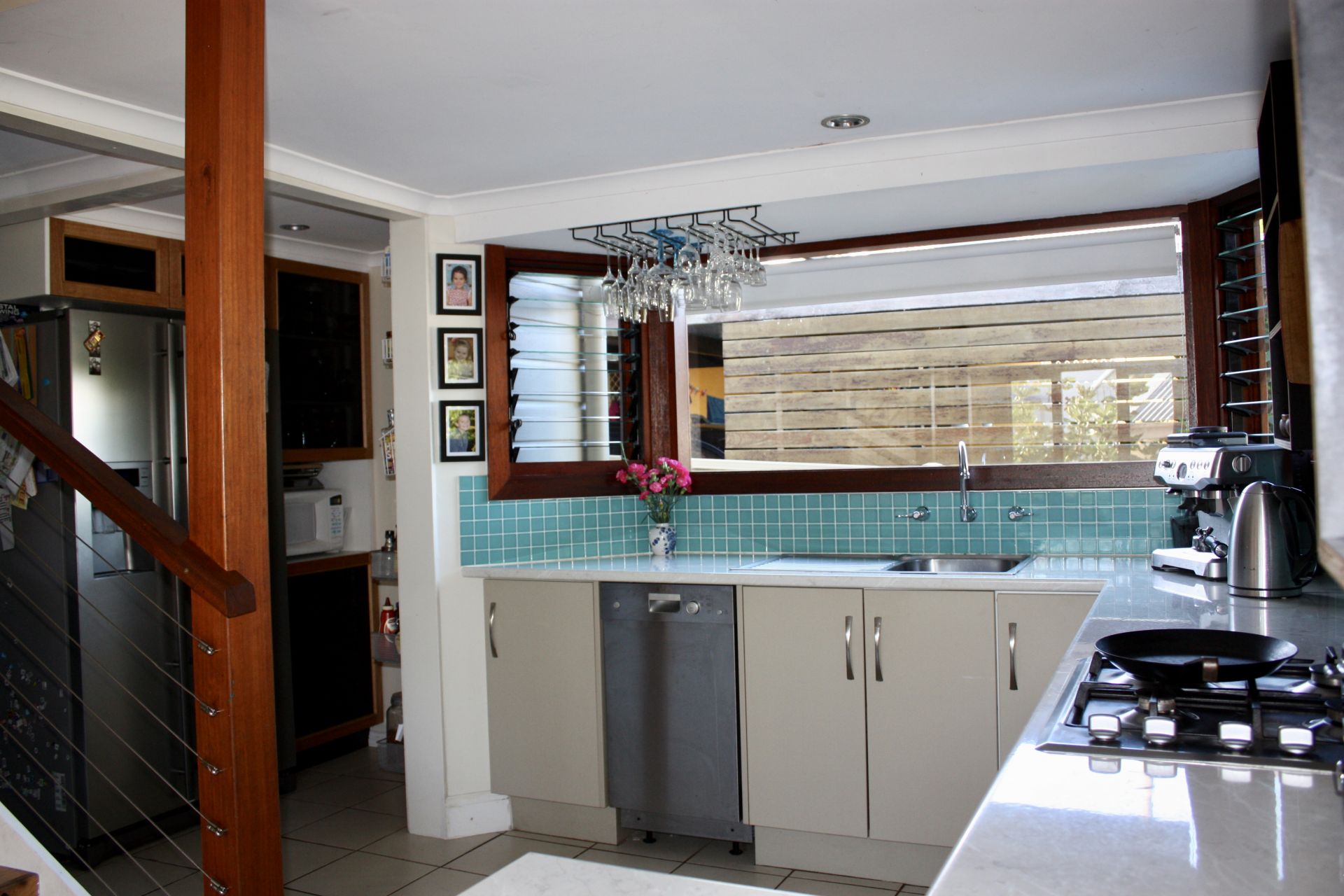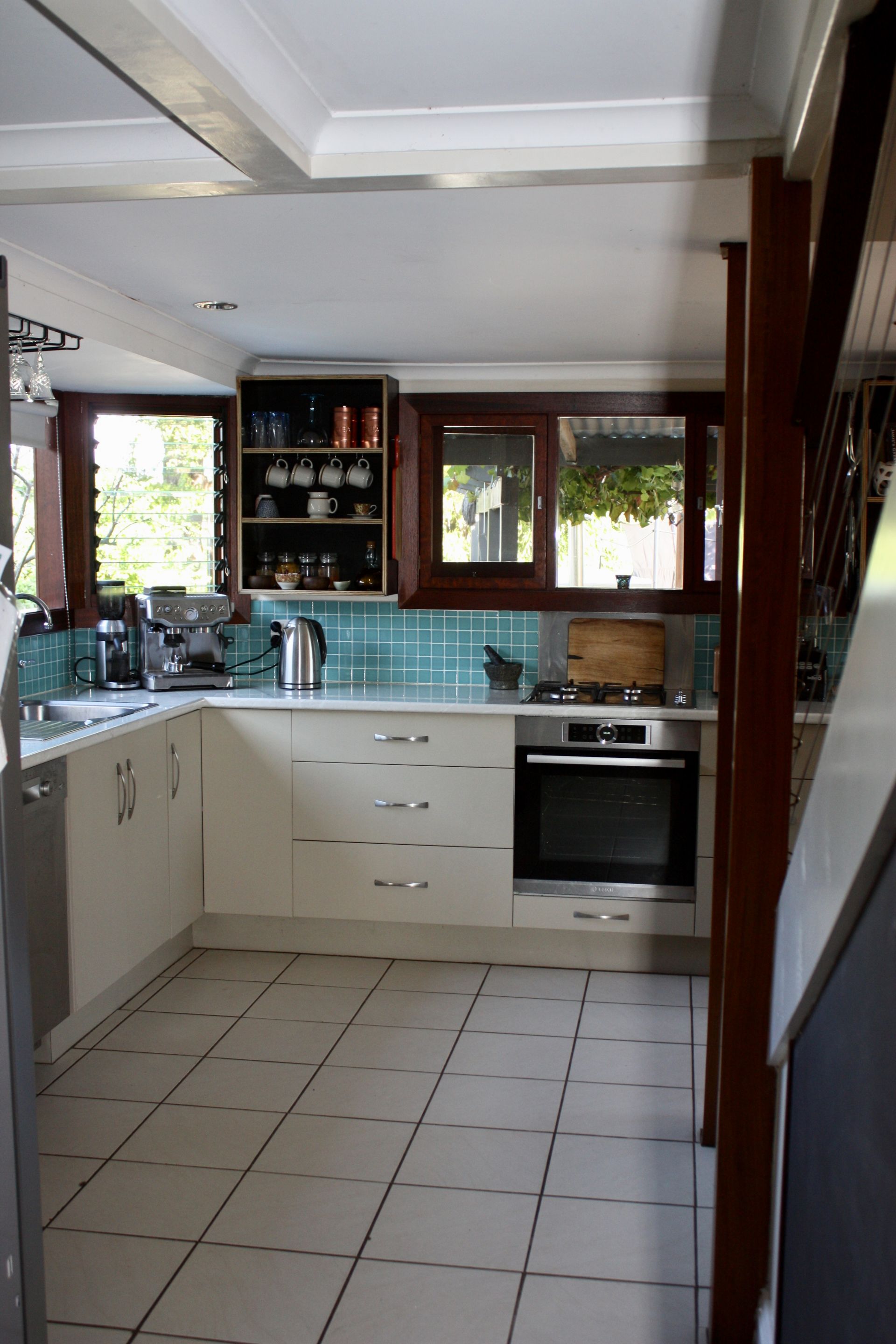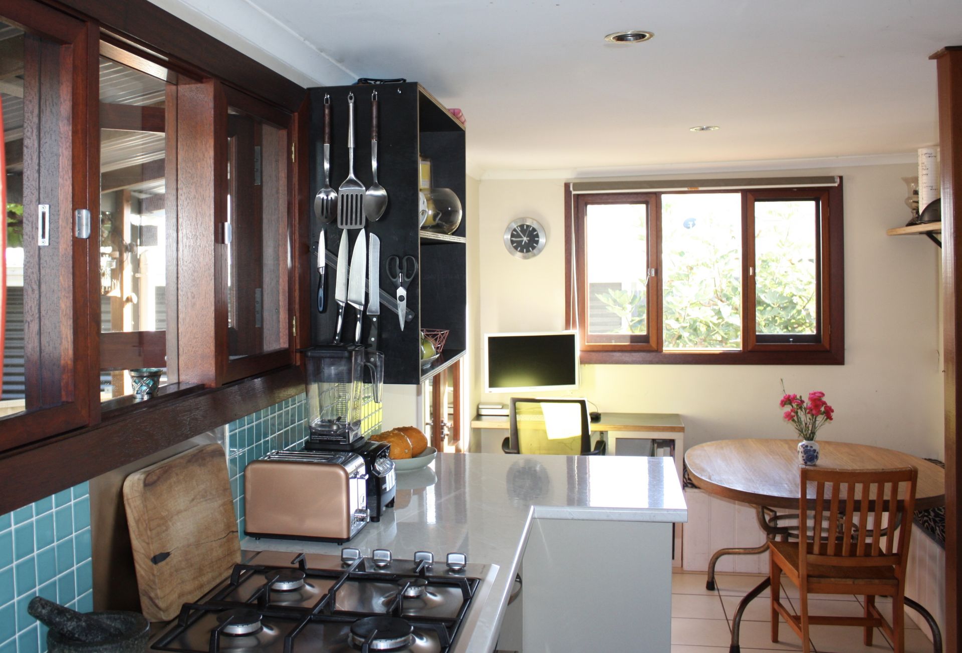 - Modern functional kitchen - new custom built pantry, gas cooktop, BOSCH dishwasher and pyrolytic oven. Light streams through timber windows and French doors lead out to the alfresco eating area.