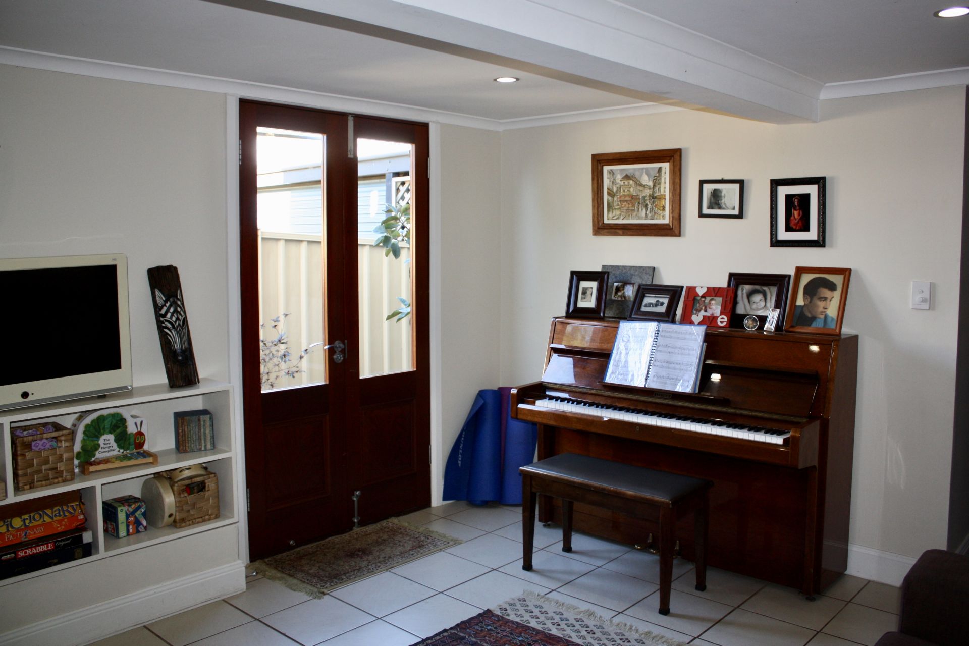 - Cosy media/music room with beautifully crafted French doors