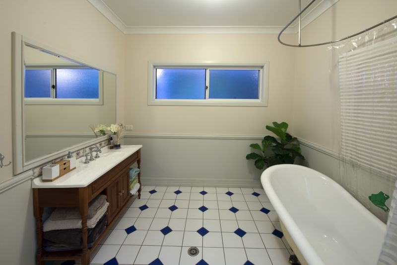 *Two bathrooms, which include en-suite to the master bedroom, freestanding claw foot bath with rain water shower head to the main bathroom.