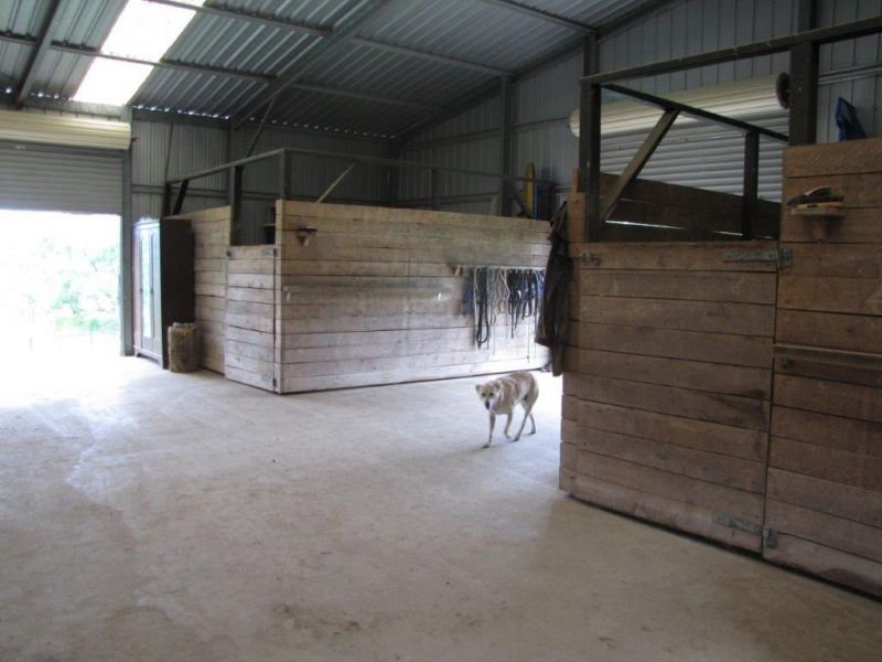 When you drive down the long driveway into this very private property you will find a recently renovated Queenslander, 4 Bedrooms all with built in robes, new carpet, 2 bathrooms, air conditioning throughout, new fire place, 2 x 5000 gallon tanks, 2 car carport, separate garage/workshop, open shed for parking tractor & gooseneck, shed/stables - with 4 large stables made out of silky oak timber, rubber lined & tack room, 2 outdoor stables/holding yards, foaling paddock, stallion paddock, 2 round yards, flat area for arena ready to go, drought proof, irrigation and power to all paddocks, lush creek flats providing feed all year round. There is ample water available with the large dam and a spring fed dam.