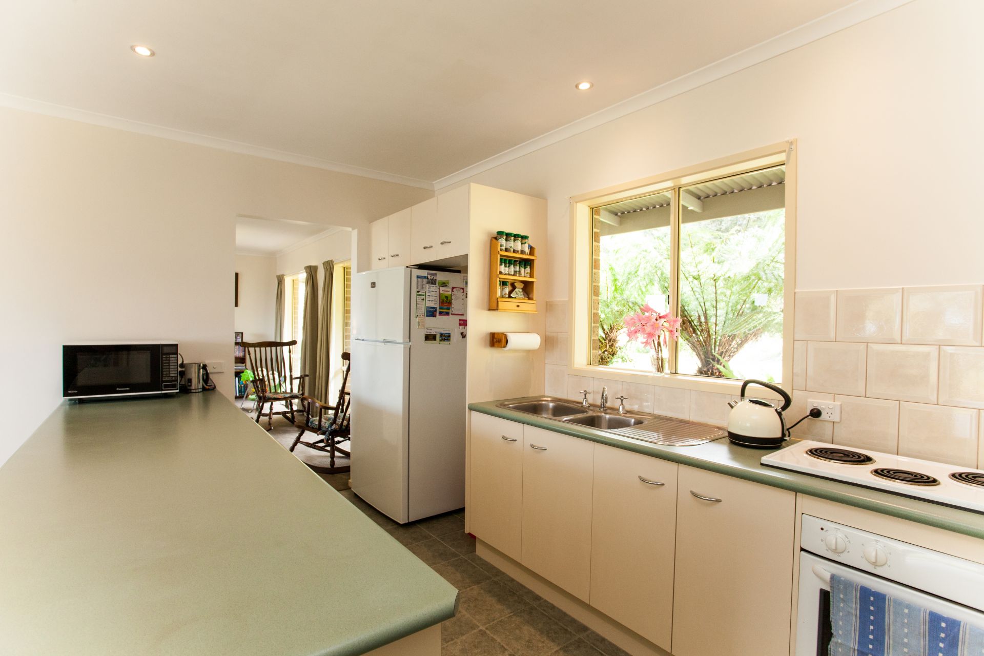 - Well-lit hostess kitchen overlooks landscaped rear garden.(With walk in pantry and space for additional white goods, dish washer upright fridge etc.)