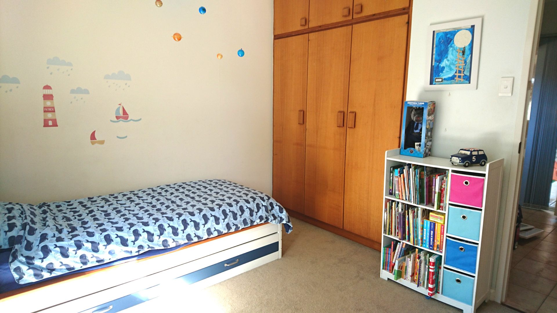 The master bed and third bedroom have built in robes, whilst the second bedroom includes shelving.