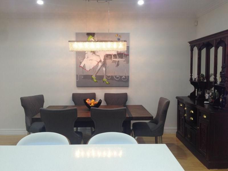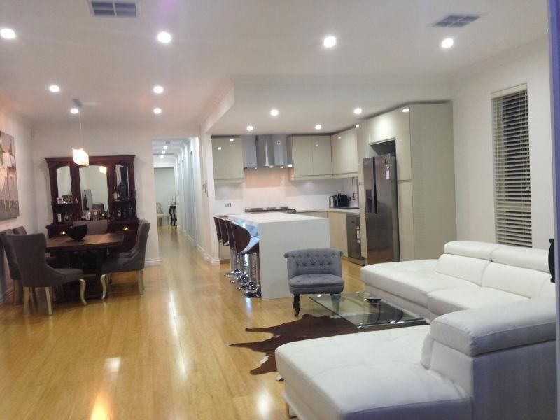 Dining space is big enough for a 8-10 seater table for you to enjoy big get-togethers. As well as this there is the Alfresco area with porcelain tile flooring,natural gas outlet,led lights and ceiling fan. Some of the extra features of this home include the Led down lights, quality tap ware, window treatments, light-filled courtyard, quality light pendants, 2.4m doors,solid bamboo floors , landscaped gardens,stacker sliding door in family area, temperature controlled gas hot water, intercom, zoned R/C ducted air condition throughout, alarm system,outdoor sink, etc...