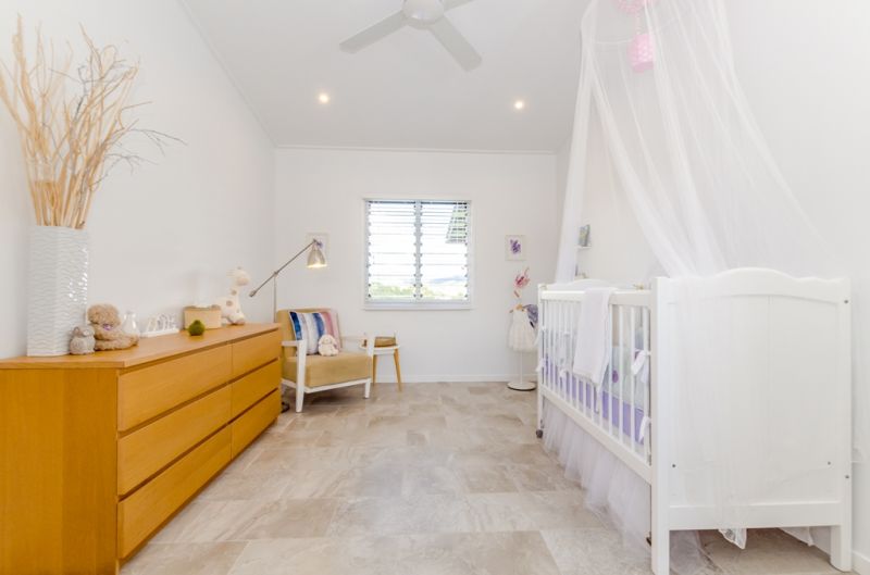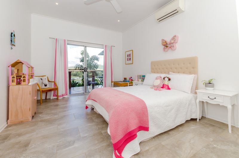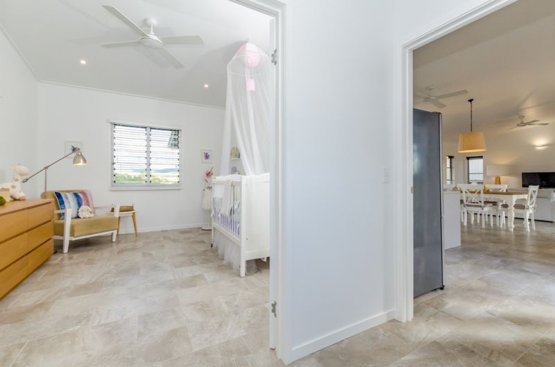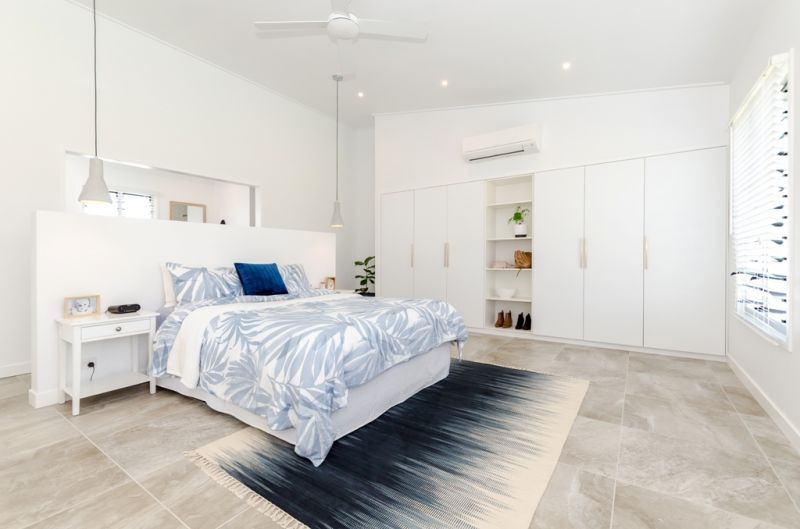 The generous sized bedrooms all have stunning views and feature louvre windows to take full advantage of the natural breezes. High raked ceilings also contribute to the spacious feel. The master suite includes an ensuite bathroom with twin basins, divided from the bedroom by a half wall, with a fully concealed toilet and large shower recess. A wall of built-ins provides abundant storage.