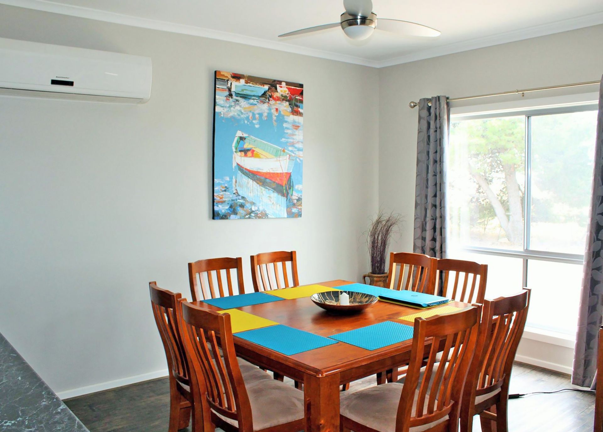 The Wonderful Open Plan Living/Dining area has Split System Heating/Cooling and Ceiling Fans for all year round comfort. The Spacious Chef's Kitchen has loads of cupboard space, 900mm Fan Forced Oven with Gas Cook Top and a Huge W.I. Pantry.