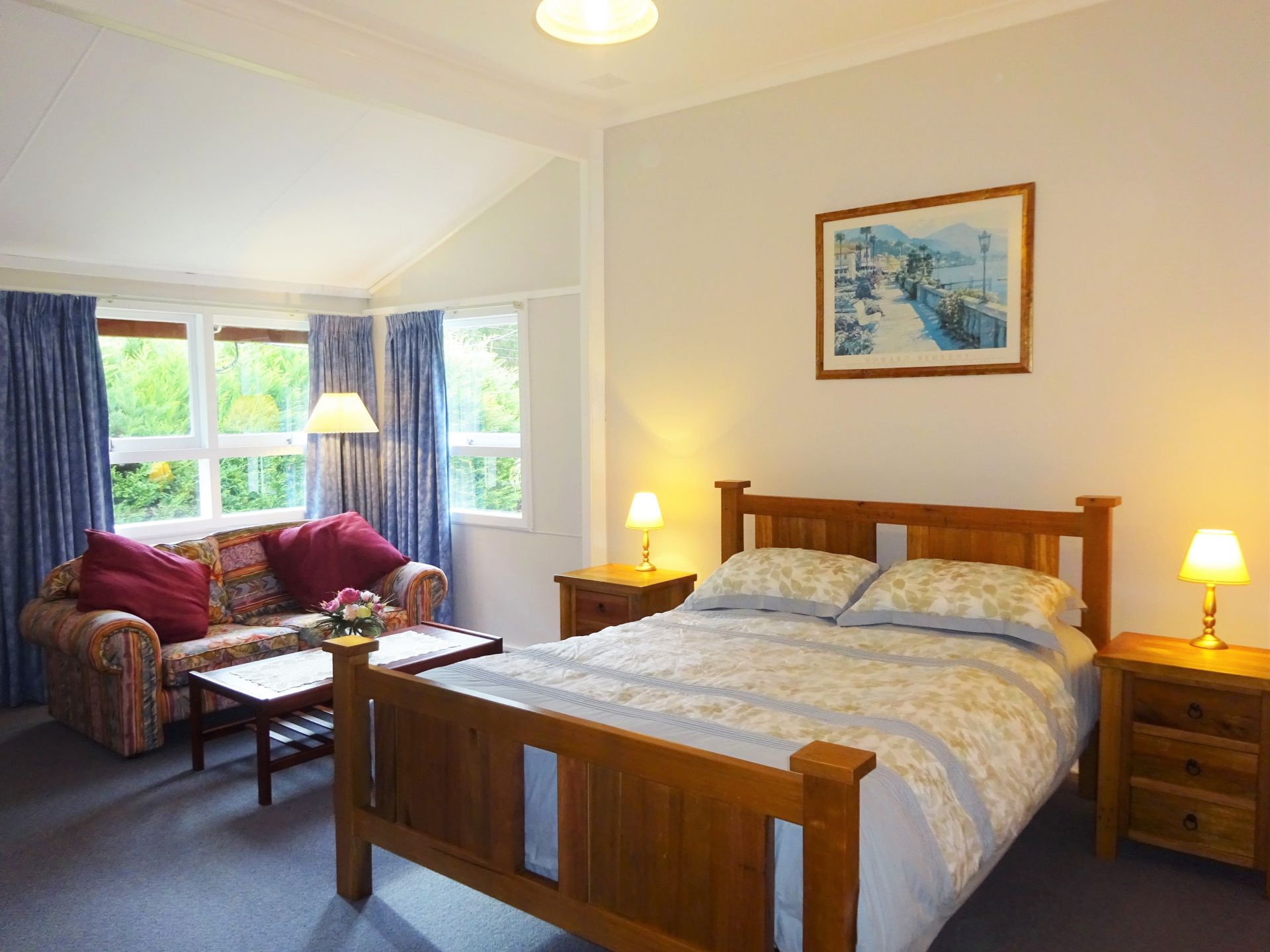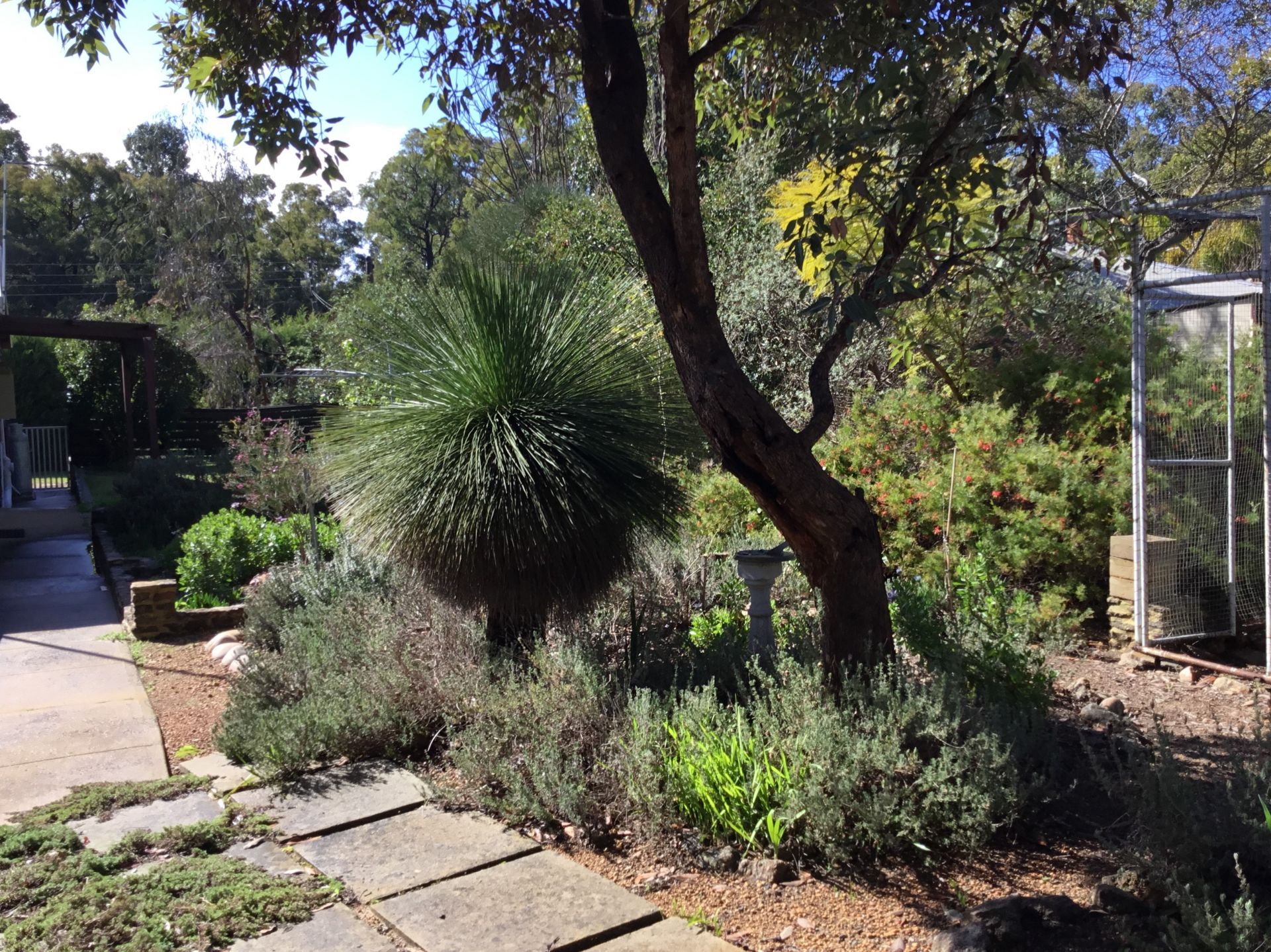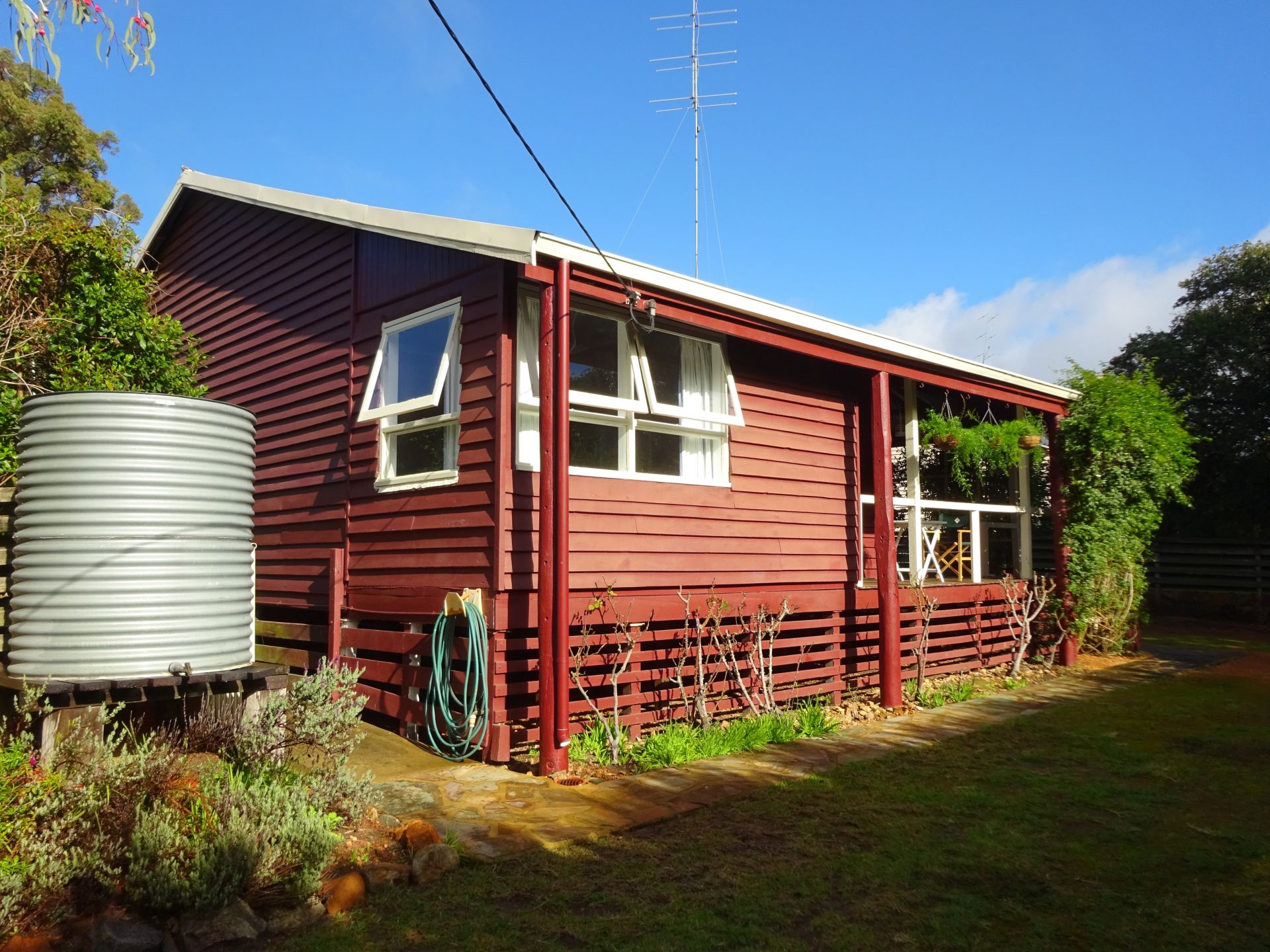 There is unique privacy in the front yard lawn area. The driveway leads up to the carport and 3 phase power workshop / garage. In front of the guest house (or fourth bedroom / studio) is a raised entertainment area and lots more.