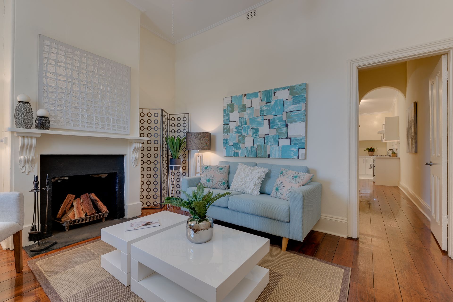 - Central hallway with decorative arch