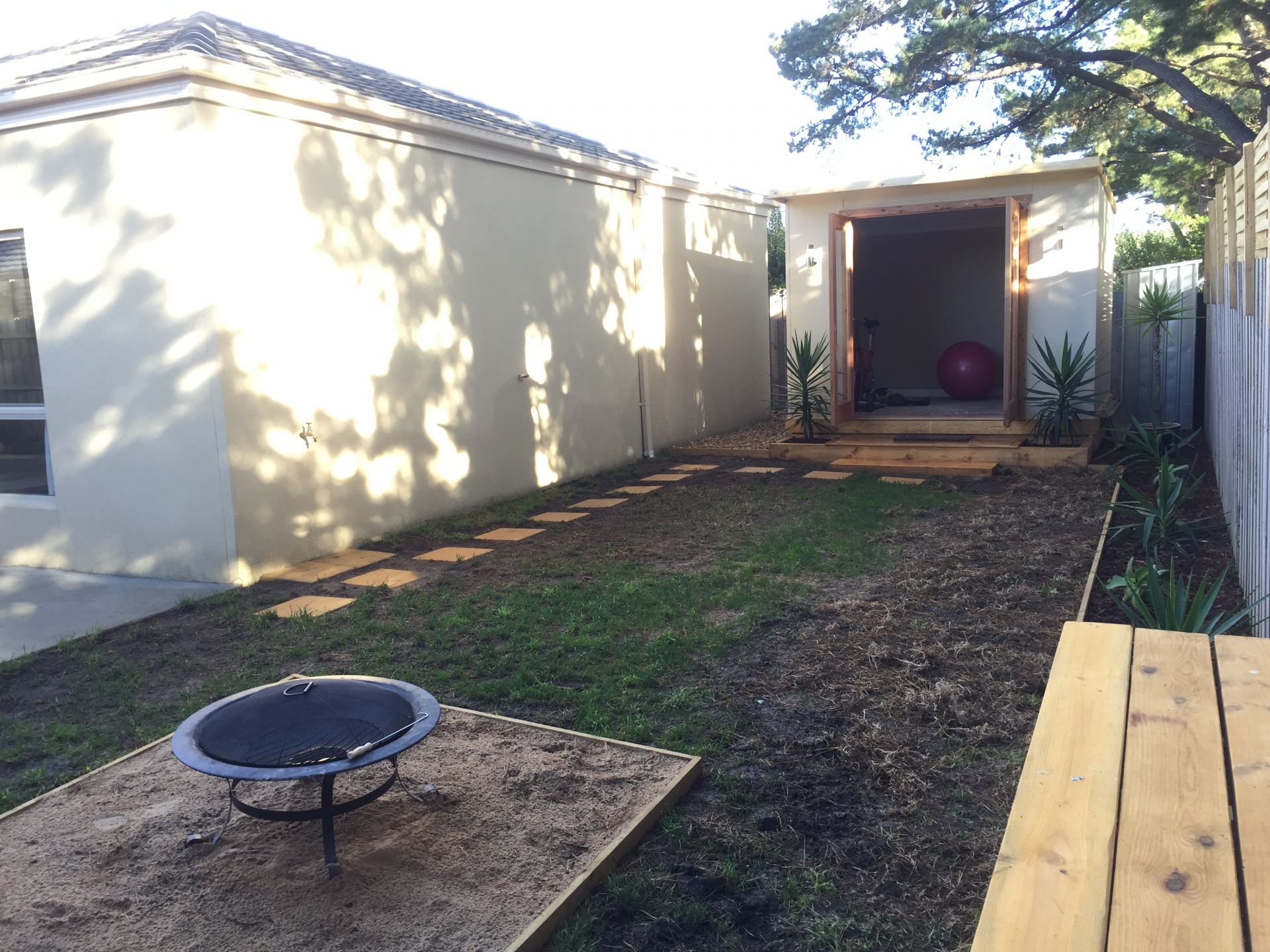 The front-yard and backyard is aesthetically pleasing and easy to maintain with contemporary landscaping and turf lawn, exposed aggregate driveway, fire pit area and a large covered paved entertaining area. This home also holds an additional outdoor retreat that can be used as an additional room or studio.