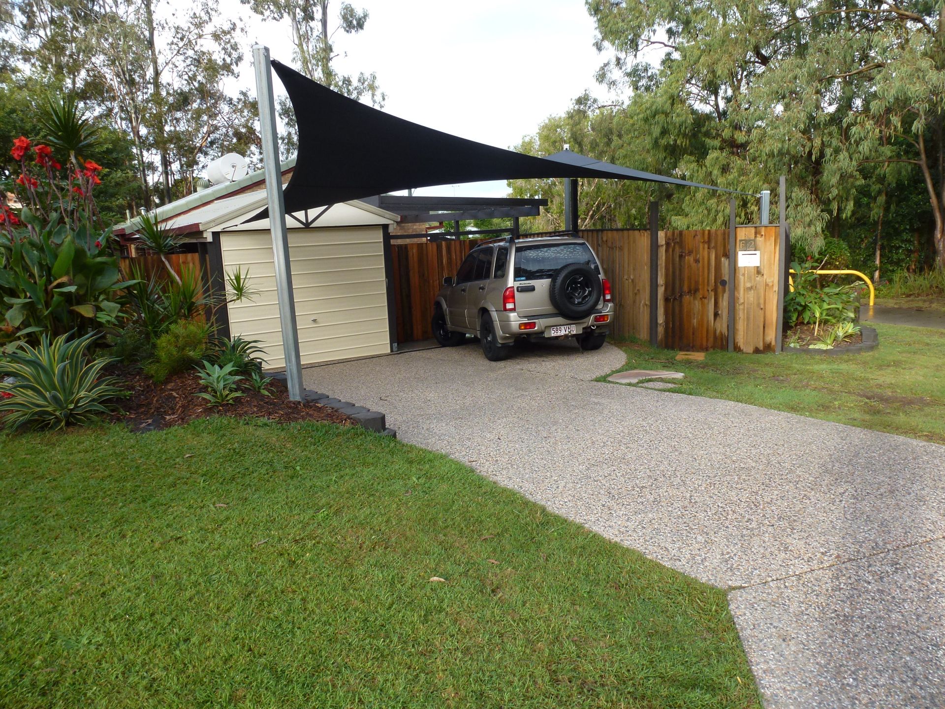 - Newly erected shadesail over the driveway to keep the cars cool in summer.