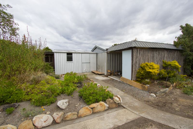 Out the back of this beautiful home is a large and open fenced backyard with fruit trees, chicken coop, large lockable shed with workshop area, lean-to for wood storage, outdoor BBQ, all connected with a beautiful garden path.