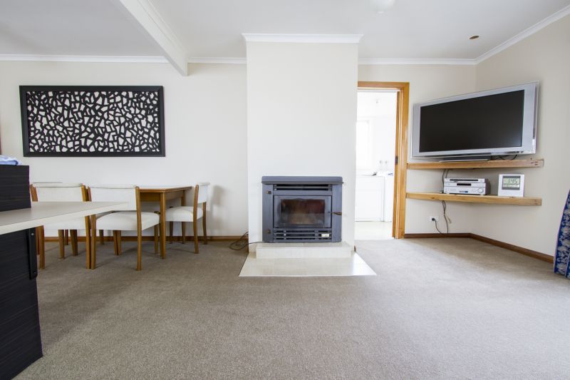Light-filled living zones and bedrooms with large windows making it a sunny, light space to enjoy, with a wood heater to ensure cosy winters.