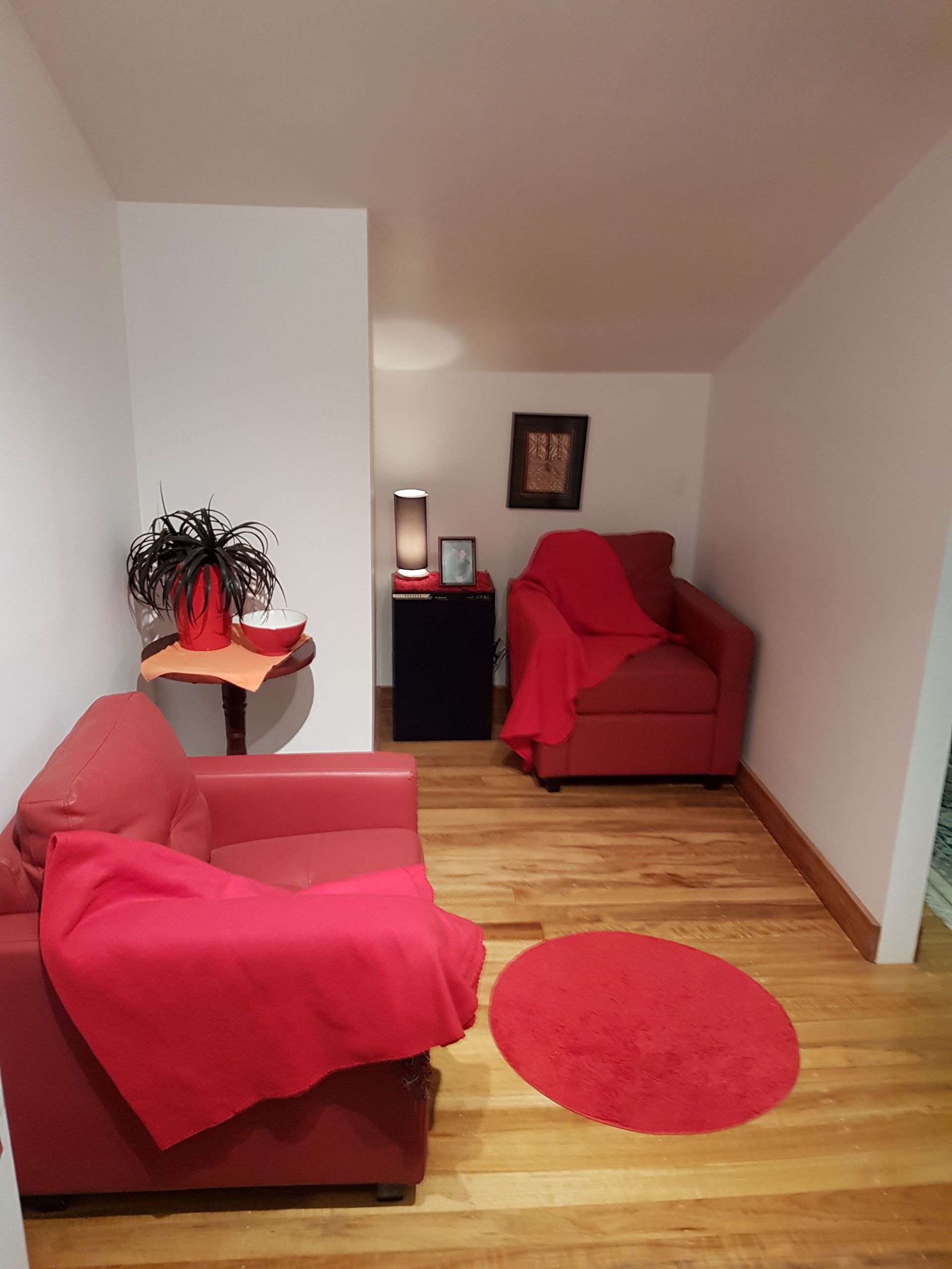 The bathroom is large and well equipped with double vanity, shower and toilet and there's also an additional powder room with toilet and wash basin.