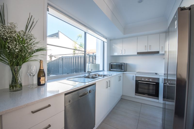 The floor plan boasts generous-sized bedrooms and bathrooms upstairs; an open living area downstairs which opens out to a covered patio for alfresco dining in a private, low maintenance garden; and a kitchen complete with European stainless steel appliances, dishwasher, pantry and soft closing drawers. Also cleverly positioned downstairs is a powder room that includes toilet, laundry with storage space, and internal access to a spacious lock up garage.