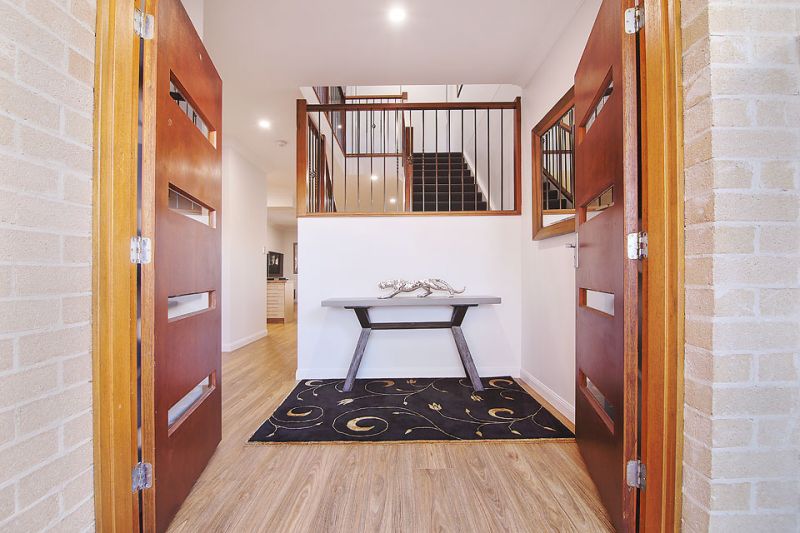 Double entry front doors with foyer.