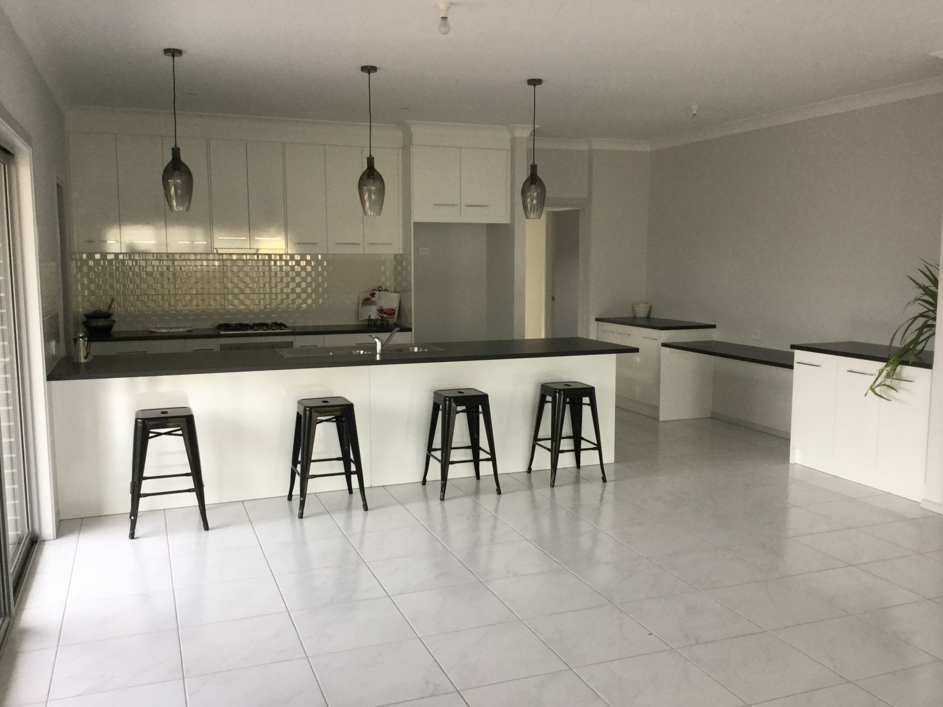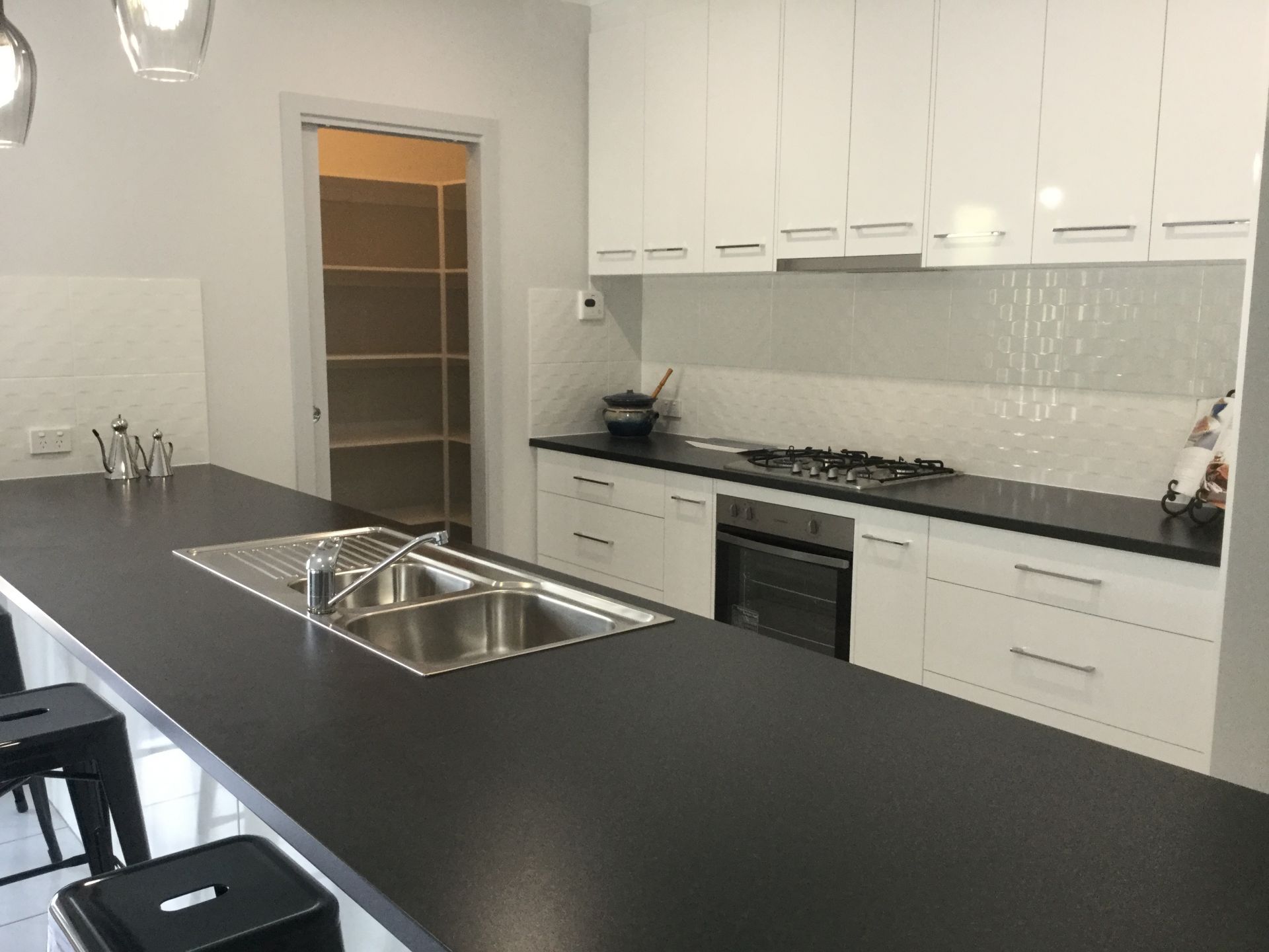 To one side of this kitchen is an ingenious social hub with bench and cupboards that will provide for the computer/IPad/mobile phones and an area that will be utilised for work and communication.