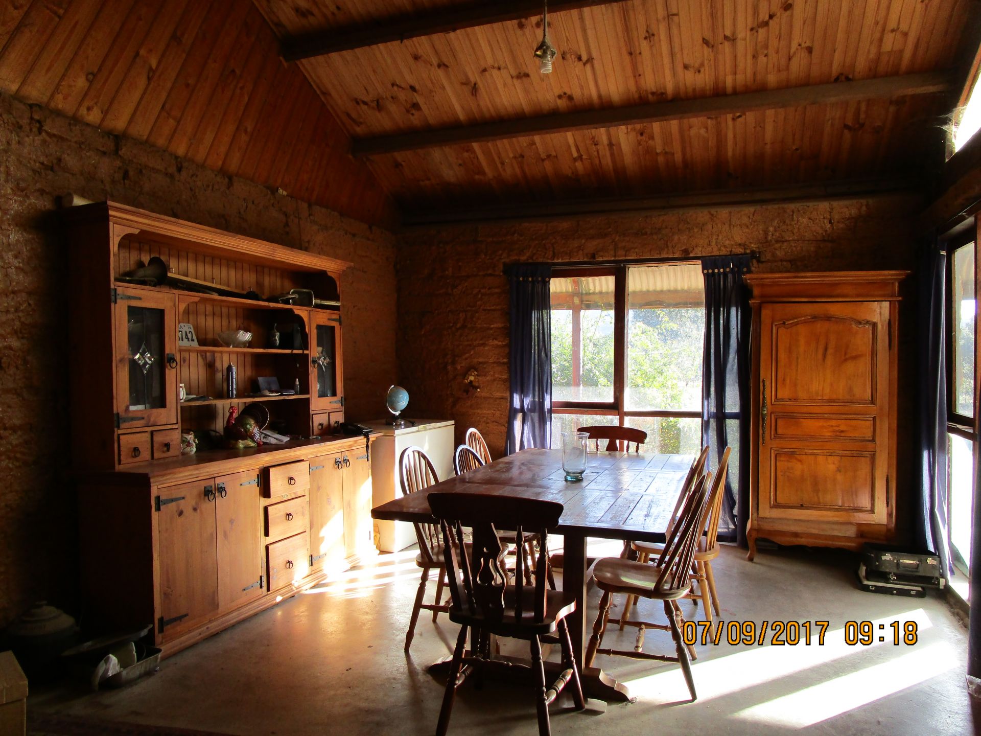 Magnificent mud-brick homestead with wraparound verandah with beautiful mountain views. The home comprises 4 queen sized bedrooms, master with double walk through robes to en-suite and large office. The main living area has cathedral ceilings and exposed iron bark beams with central wood heating. The spacious kitchen has plenty of cupboards, an island bench and a dual fuel (wood and electric) double oven (Furphy) cast iron cooker. The family bathroom has a separate shower recess and a large claw-foot bath. There is a double garage and spacious workshop under the main roof. Outside there are 30 well-fenced acres, 2 dams and all paddocks have water. There is a large pergola with a pizza oven, large shed with concrete floor and full annex. An orchard, large hen house and a fernery.