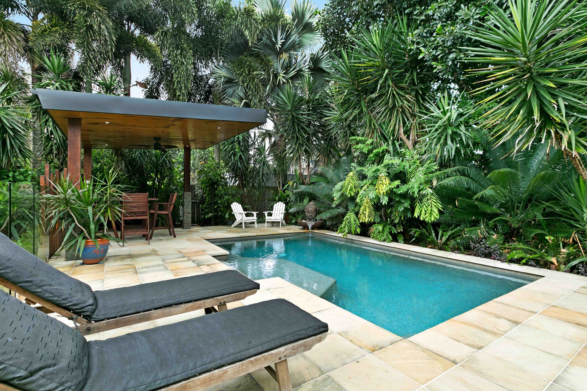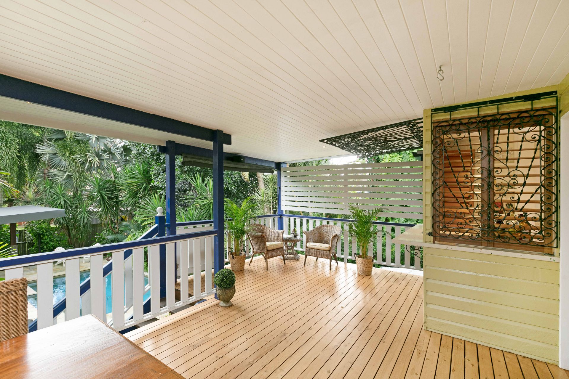 - Spacious outdoor deck overlooking the large garden and tropical Salt Water Pool
