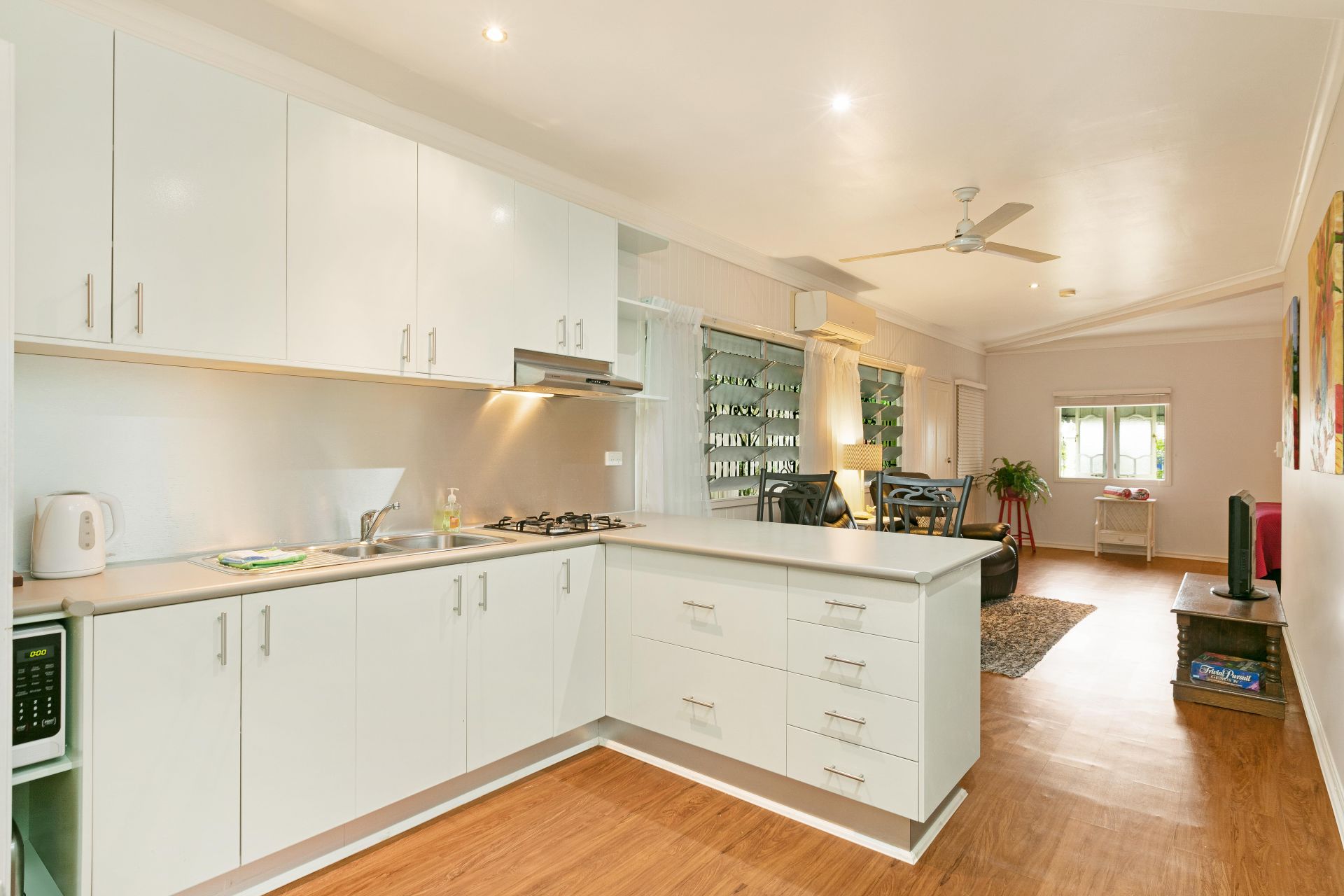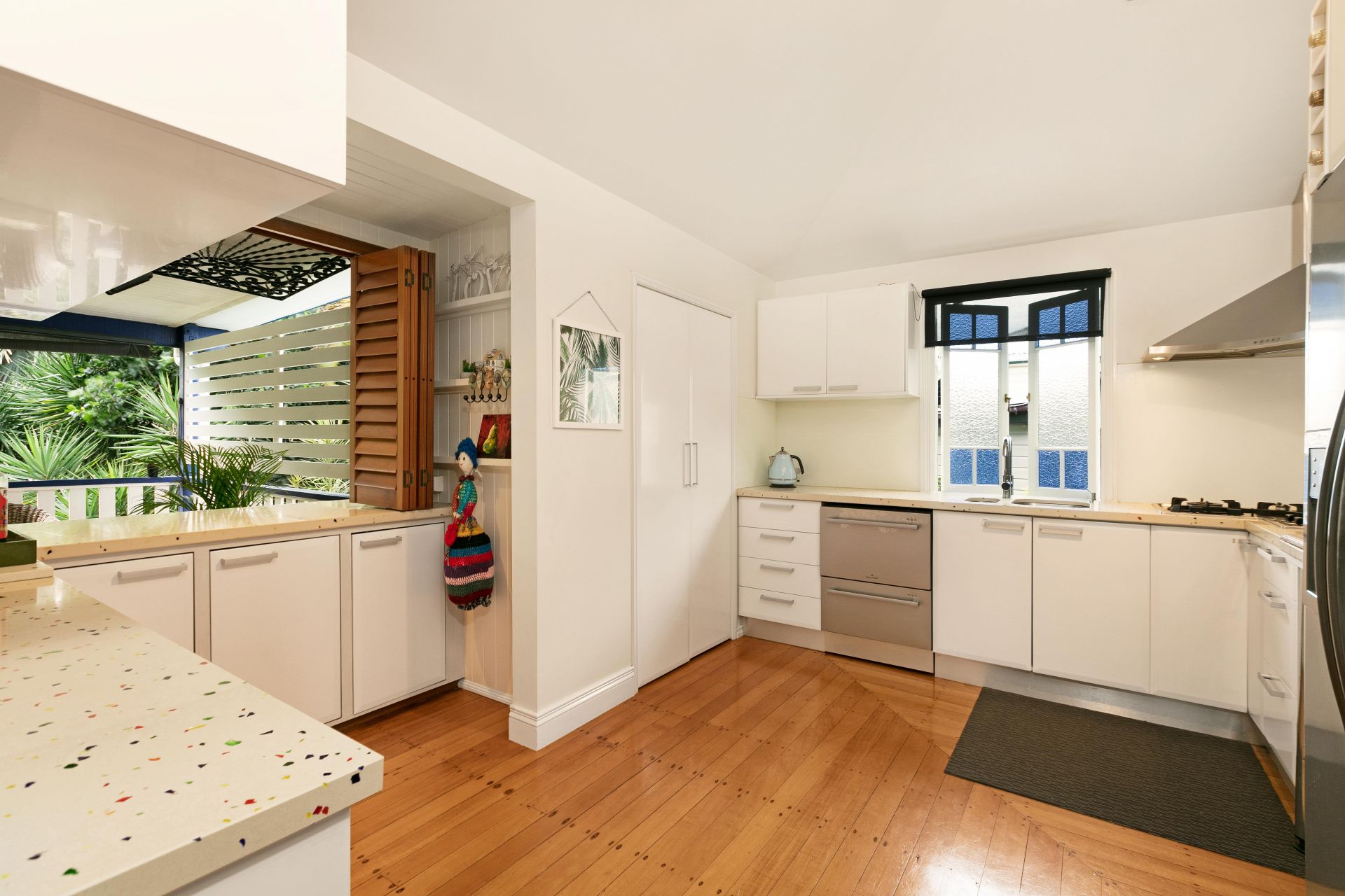 - Large open kitchen with wrought iron "lift up" servery onto the deck, walk-in pantry, european appliances plus plenty of cupboard space