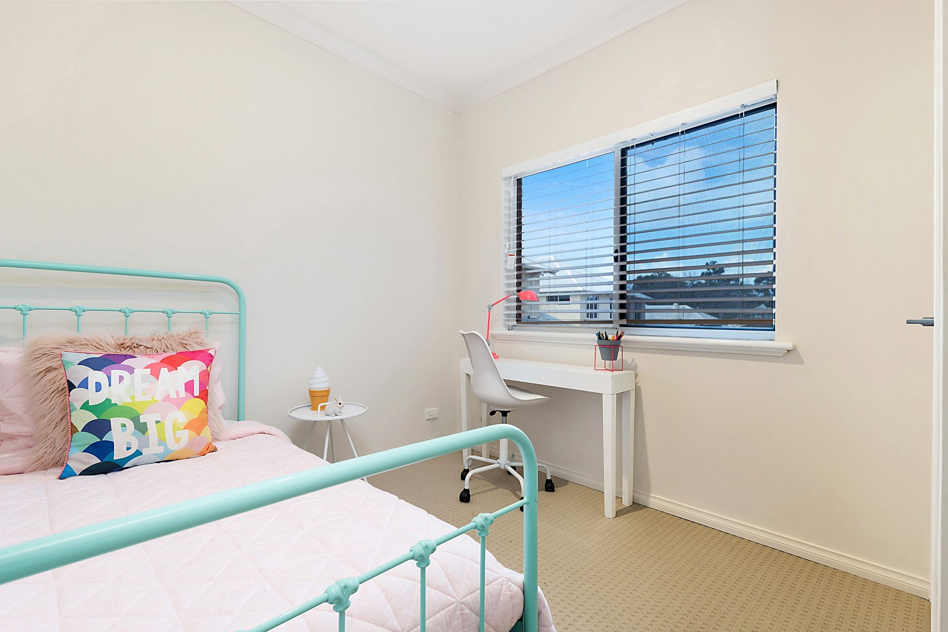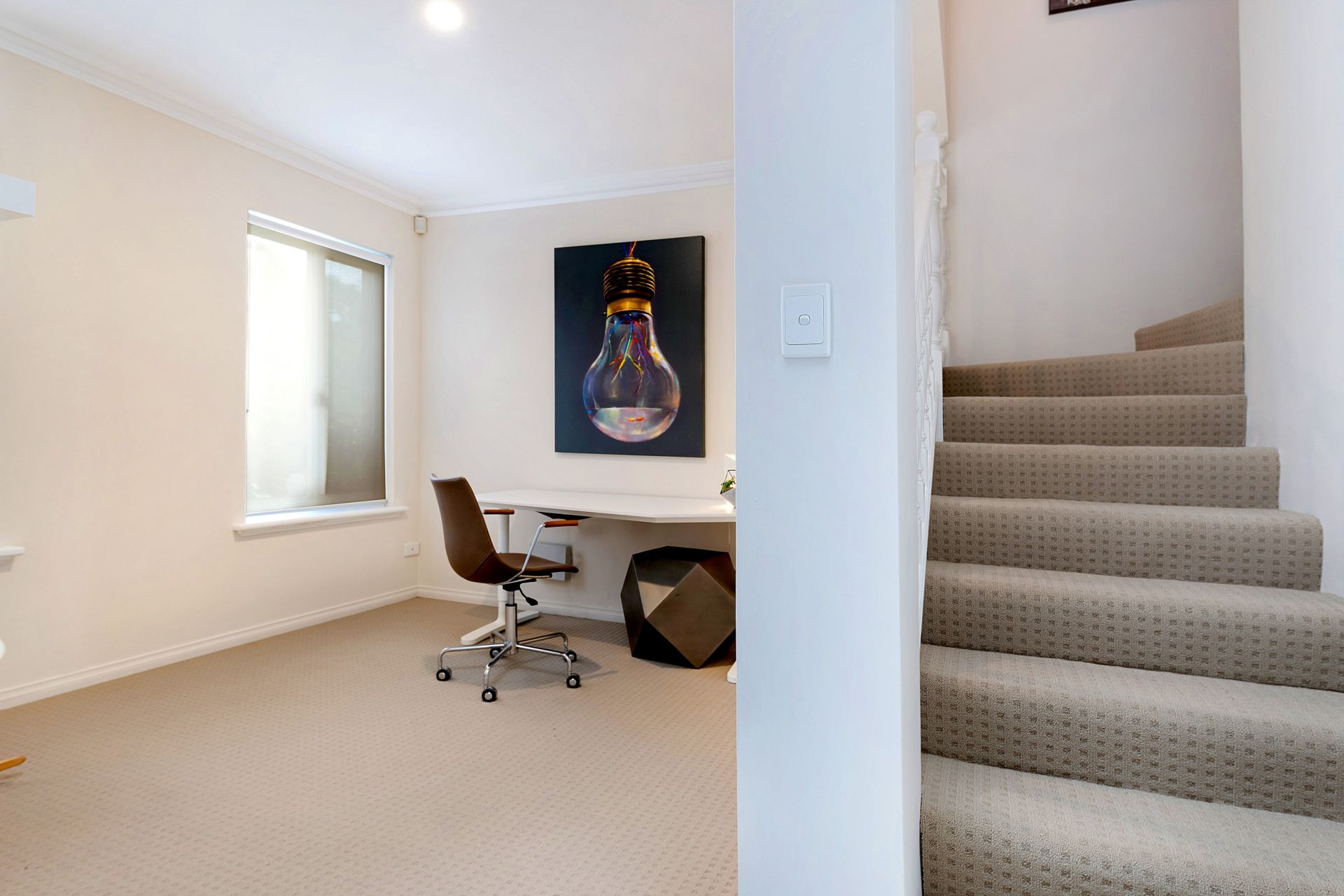 Downstairs I have a study, powder room, laundry (you'll be rapt with my laundry) and large open plan living area.