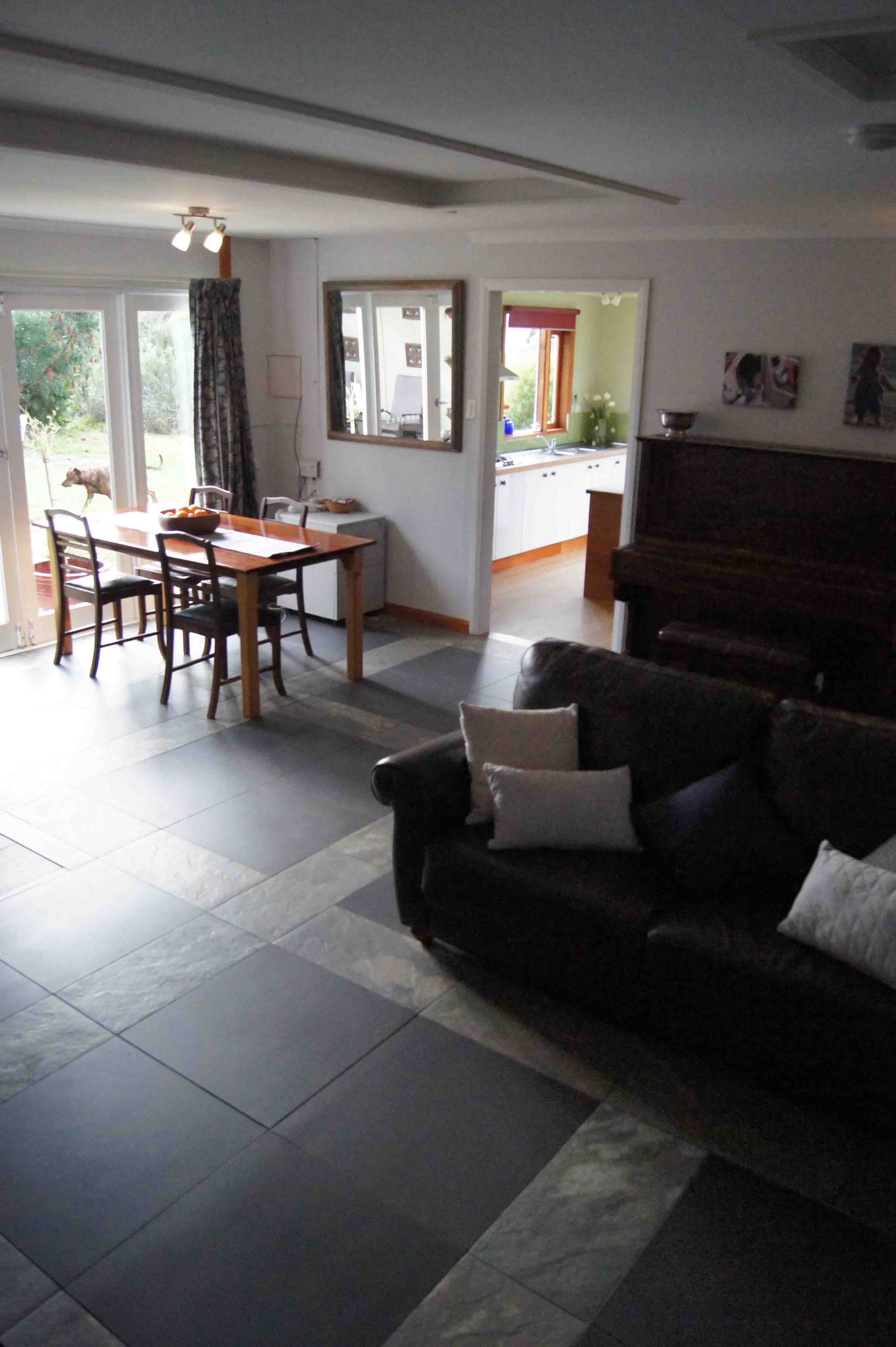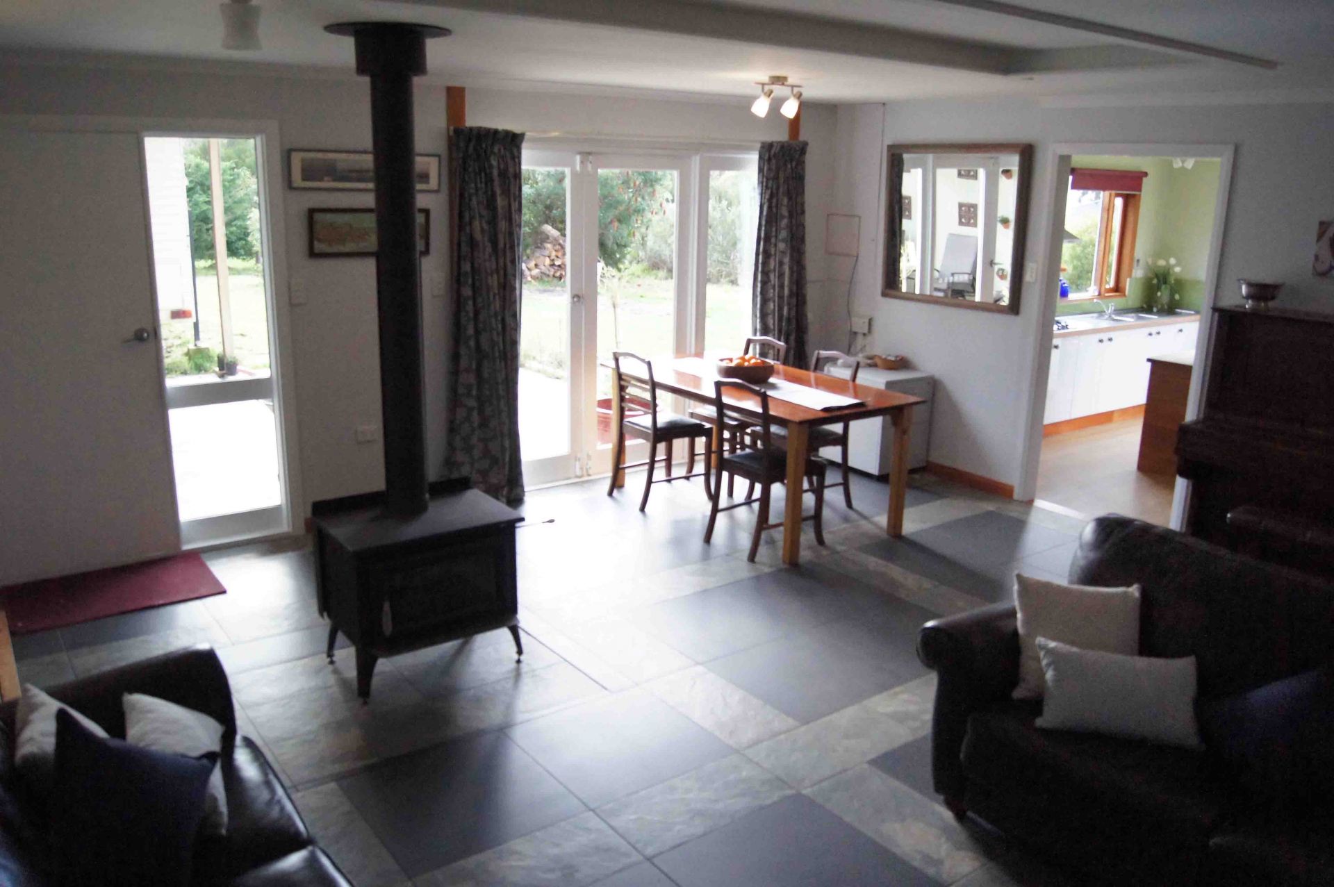 With the essential northerly aspect for optimum solar passive energy gains and tiled concrete floor in the living area providing thermal mass, a cosy temperature is easy to maintain year round with a minimum of additional heating.