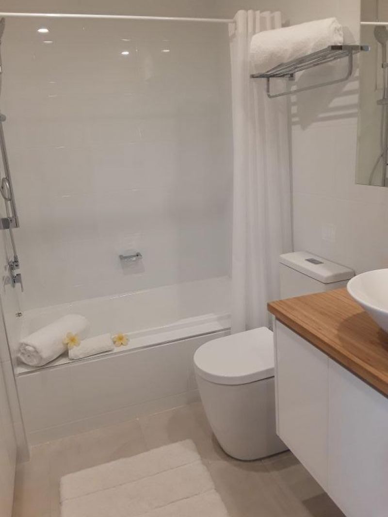 Main bathroom also has a beautiful bamboo topped vanity and also includes a bath and shower and laundry facilities