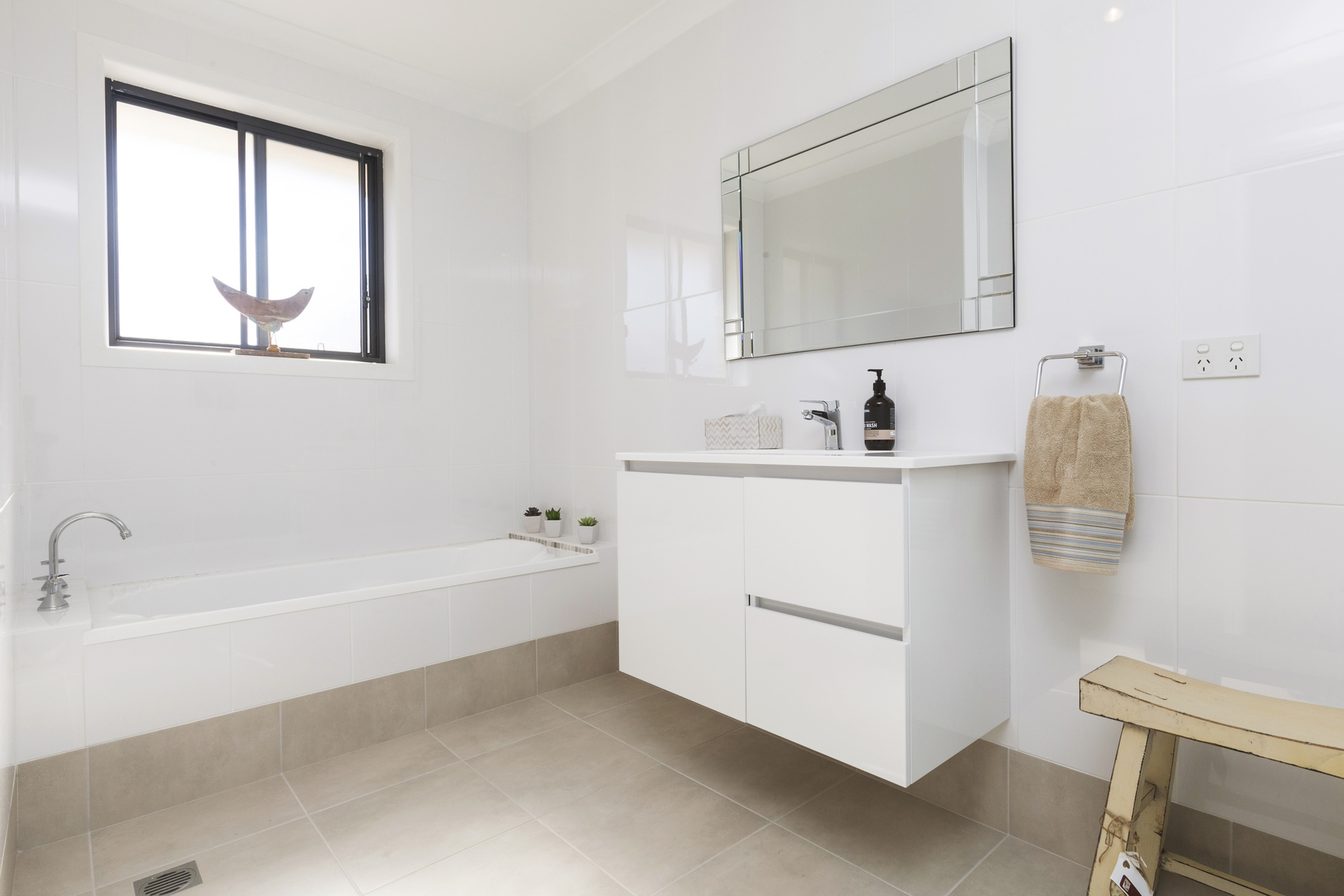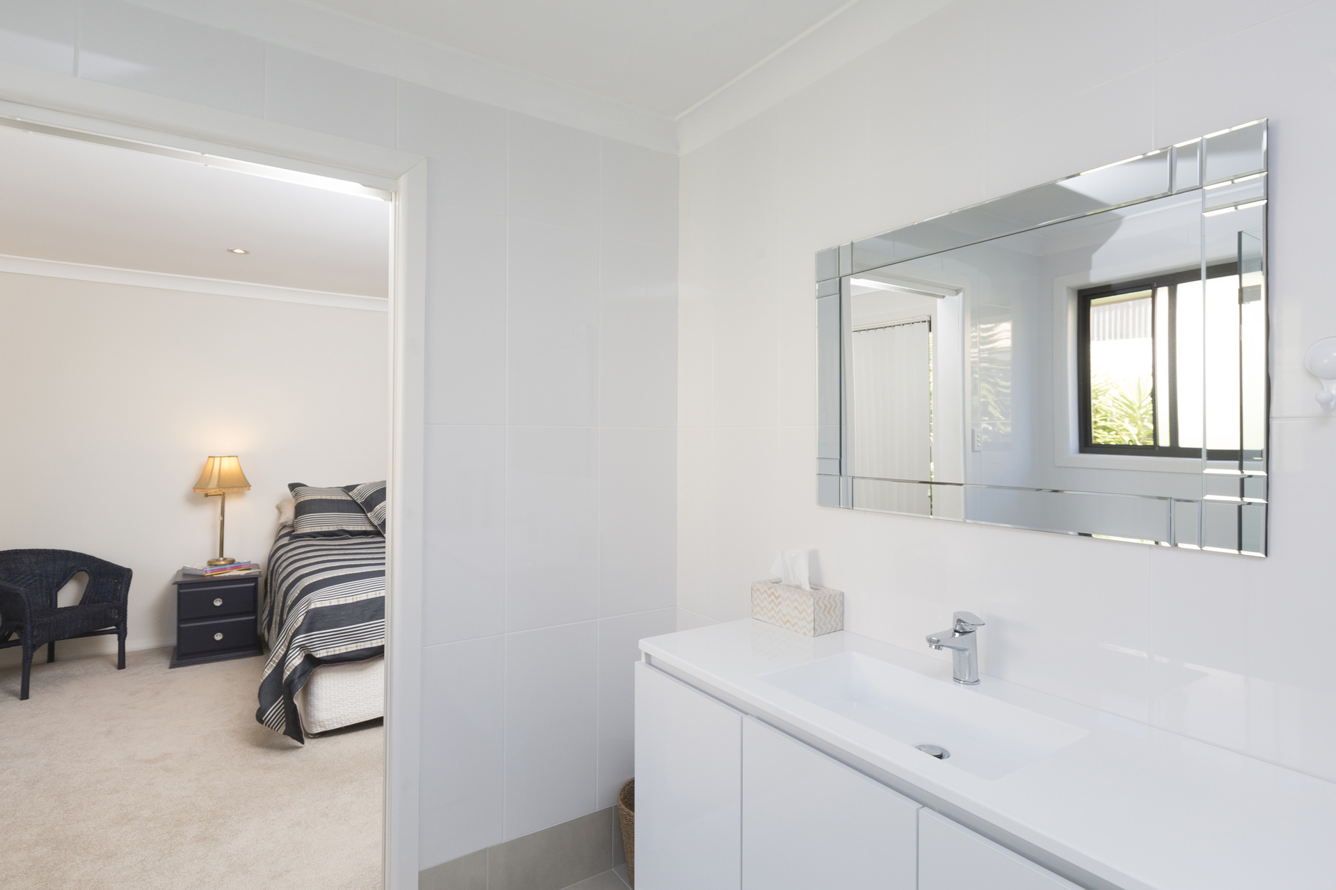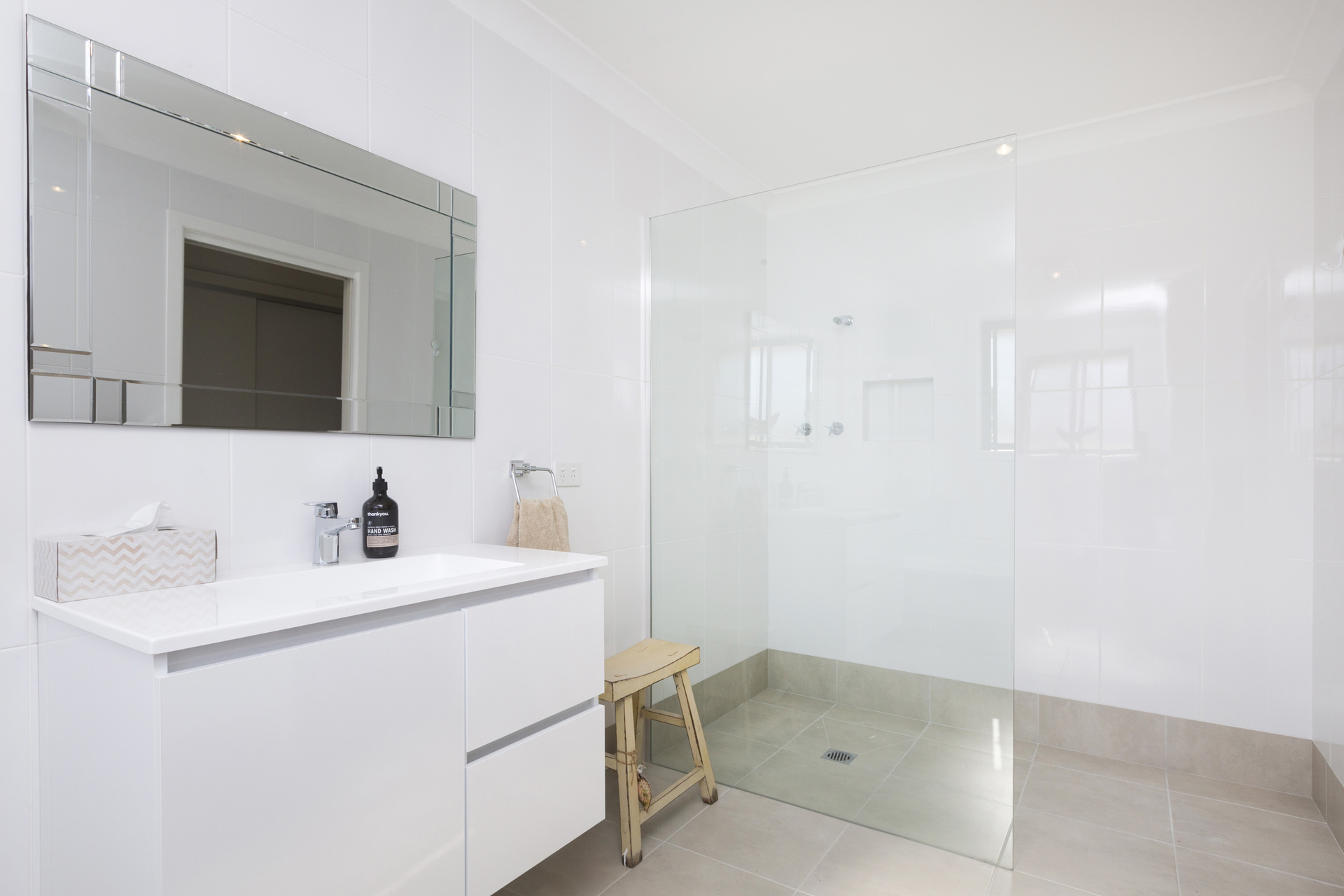 Both ensuite and main bathroom have seamless walk in shower screens with non slip tiled floors.
