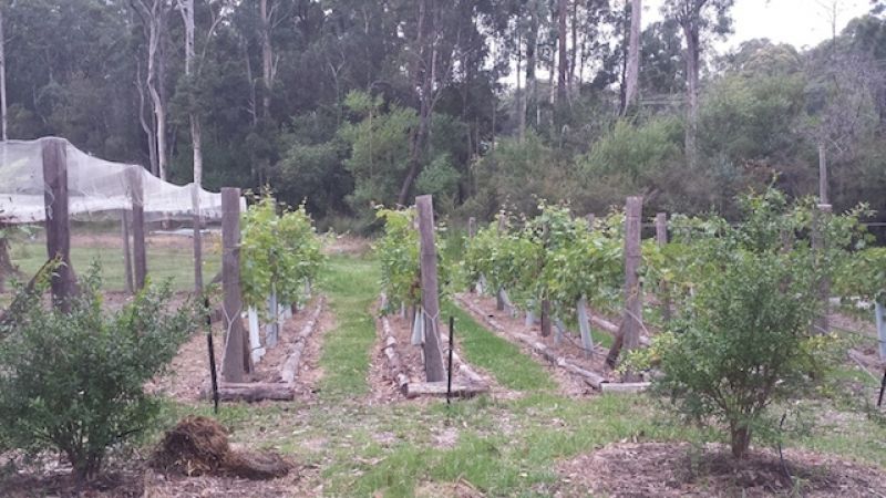 Established small vineyard of Chambourcin grape vines.