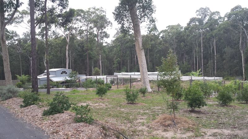 10K L water tank for garden with gravity feed to taps, irrigated orchards/gardens, 12 x 24m fenced/netted crop growing area and 50+ established fruit trees.