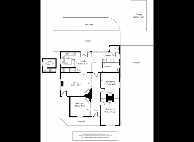 Comprises 3 large bedrooms all with feature fireplaces, seperate lounge, modern attractive bathroom, spacious kitchen with plenty of cupboard space, underground cellar, adjacent dining with bi-fold doors that open to a paved patio/entertaining area underneath a woody vine pergola.