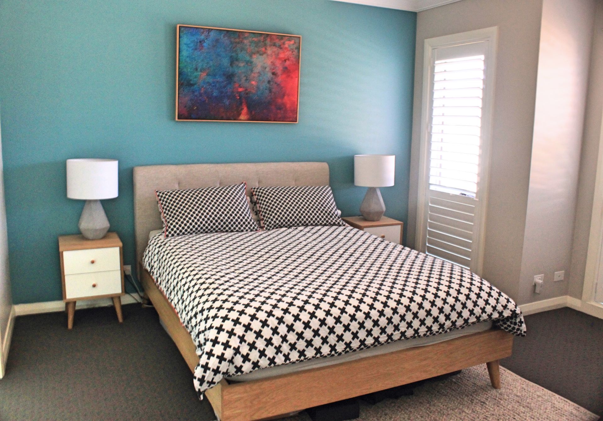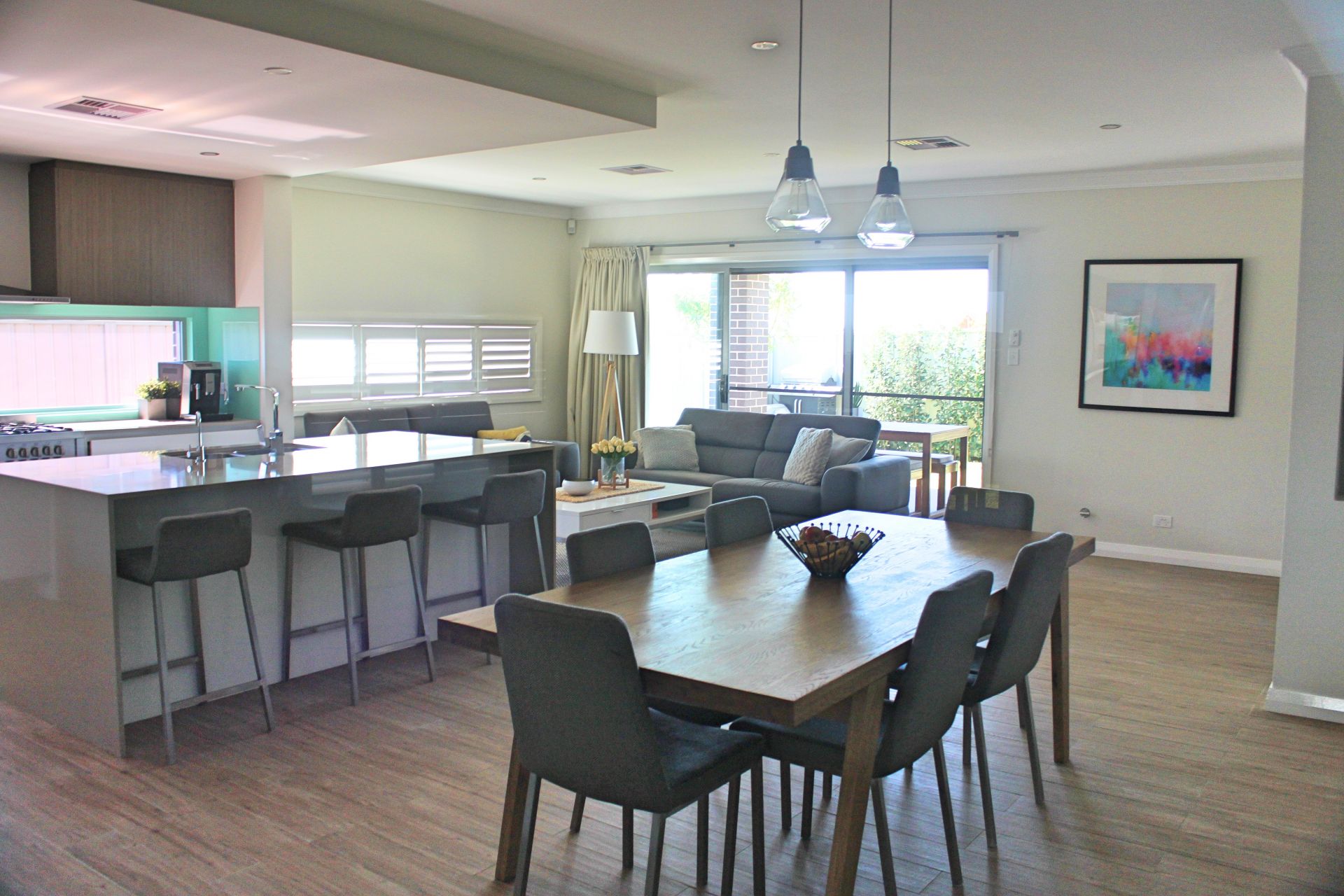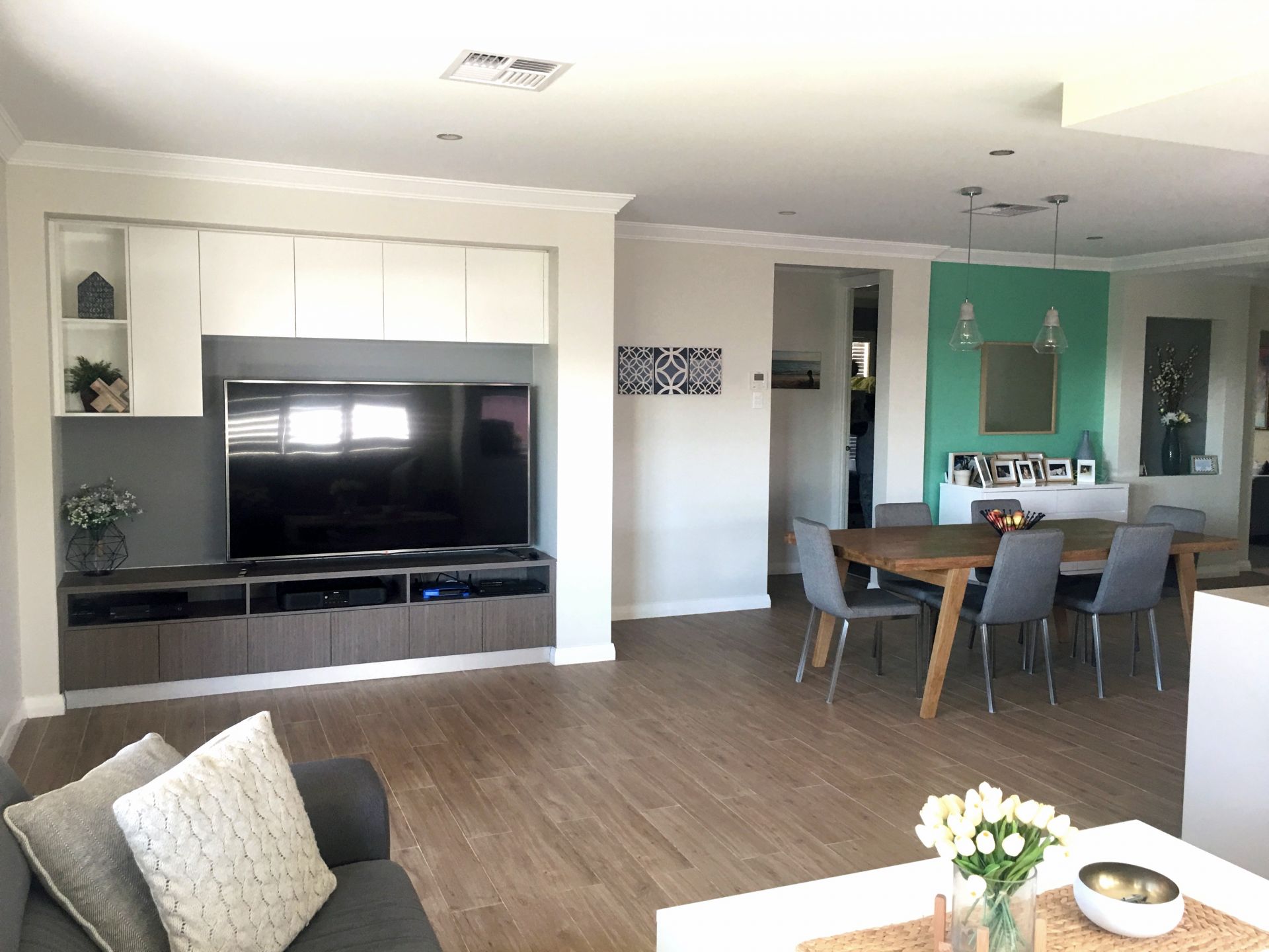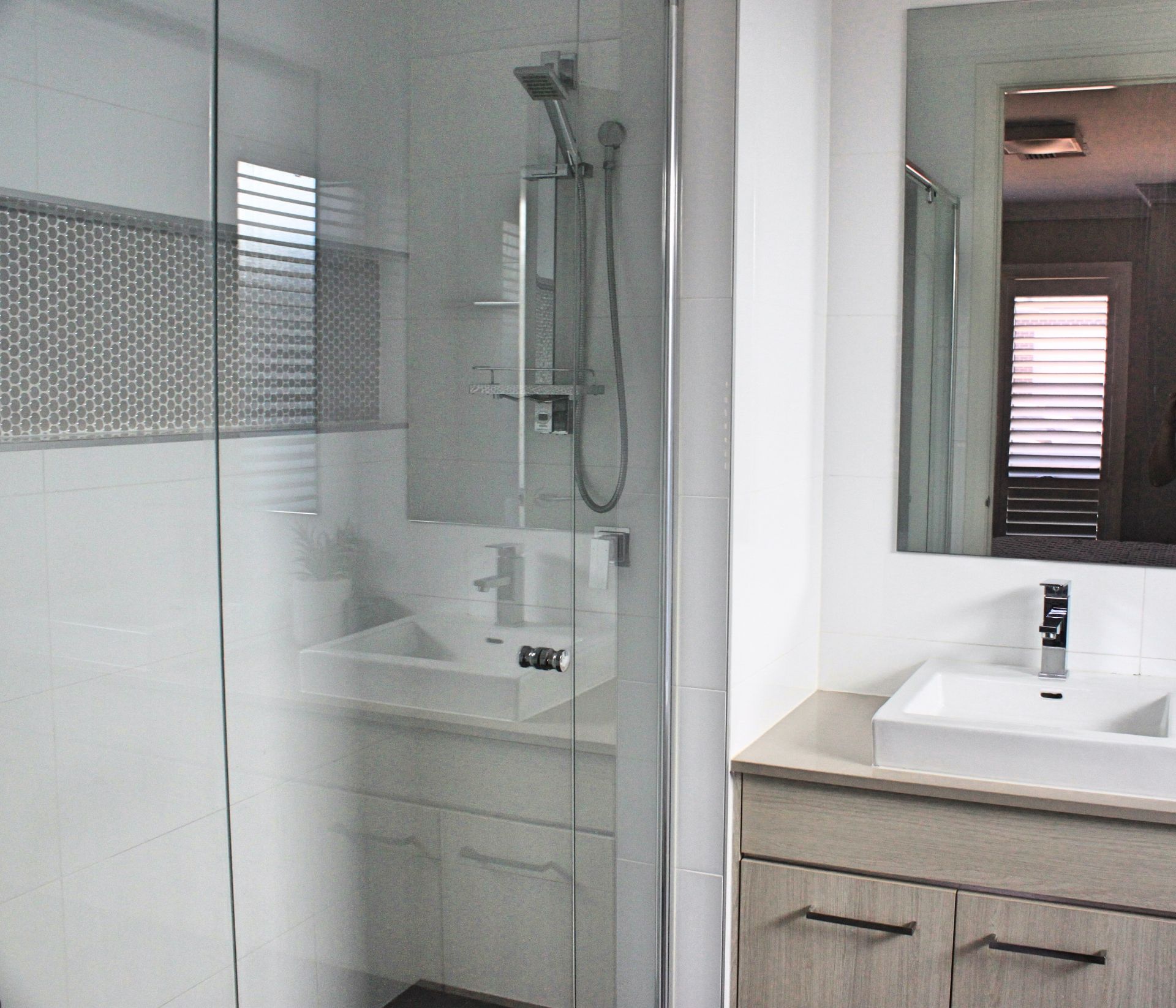 *Large format Italian timber look tiles, basswood plantation shutters / venetians and LED downlights throughout with Clipsal slimline wall plates and LED pushbutton switches create a beautiful foundation to match all decorative tastes.