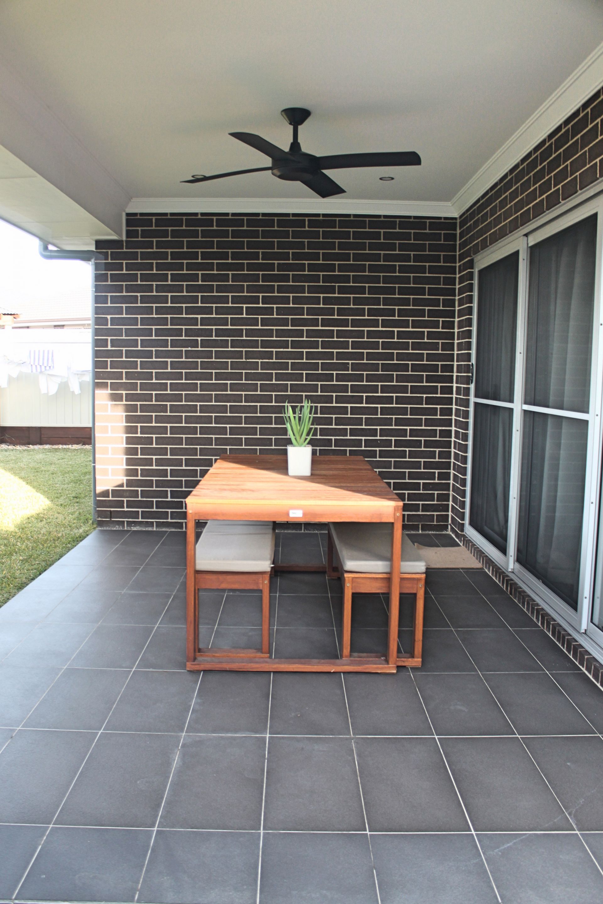 *The fully tiled alfresco dining area with LED lighting, outdoor gas / power point and a contemporary outdoor fan overlooks a lovely low maintenance backyard, perfect for entertaining all year round.