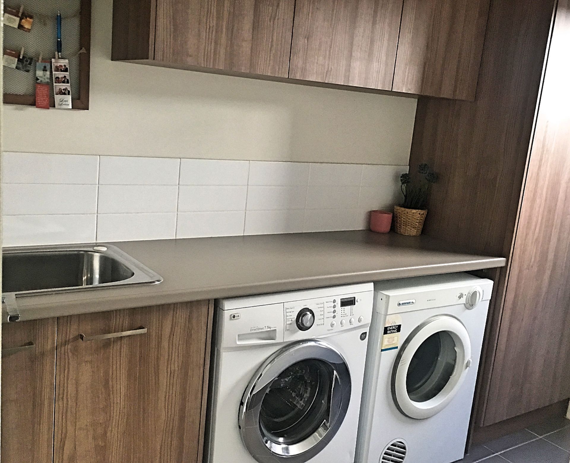 *A spacious laundry with custom overhead and tower cabinetry, as well as a spacious linen that will meet the most challenging storage requirements.
