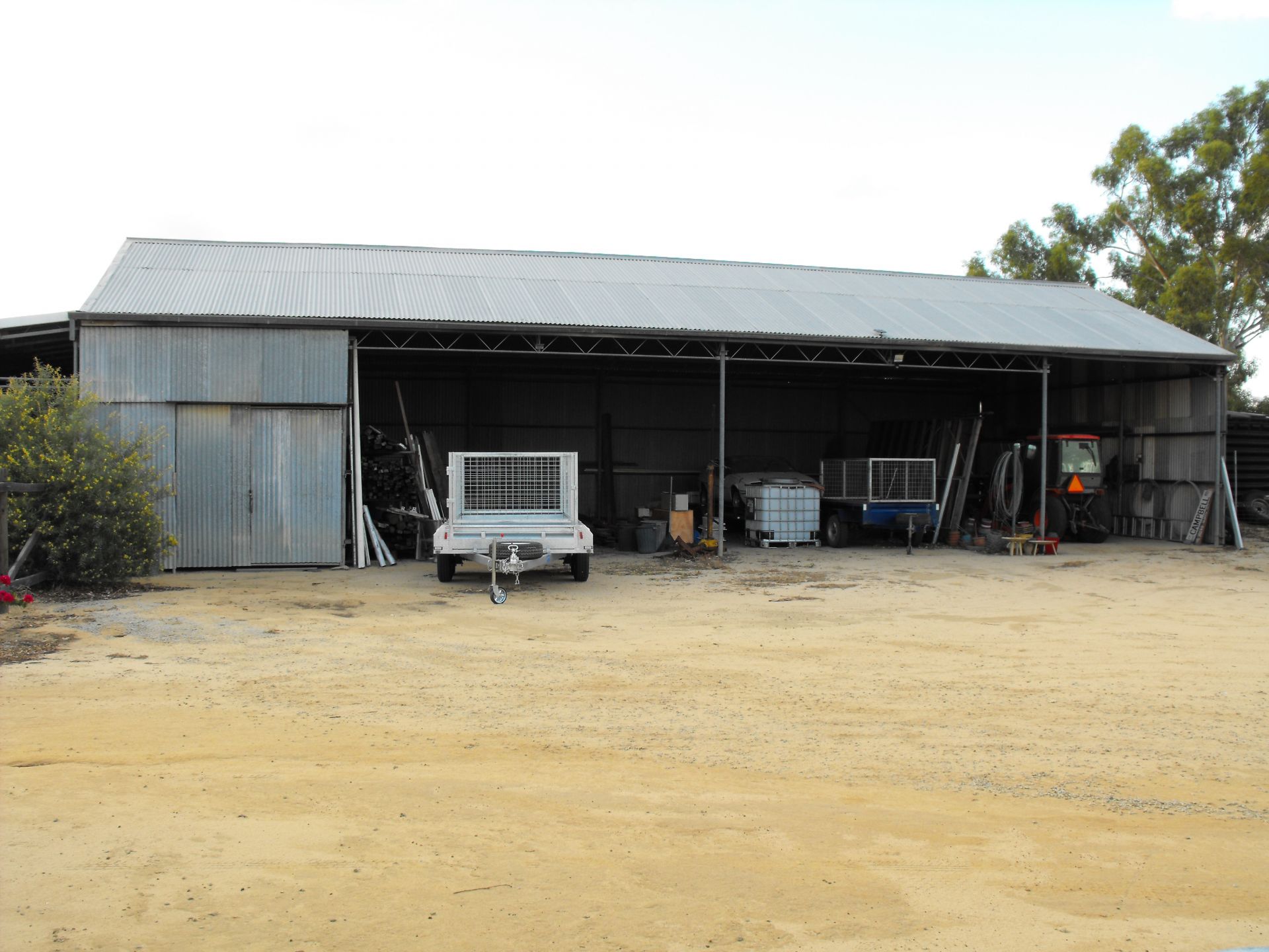 Large machinery shed (242 sq m) with lock up and power. Workshop (76.8 sq m) with concrete apron, two lockups and power (including 3-phase). Two large water tanks, one with pressure pump.