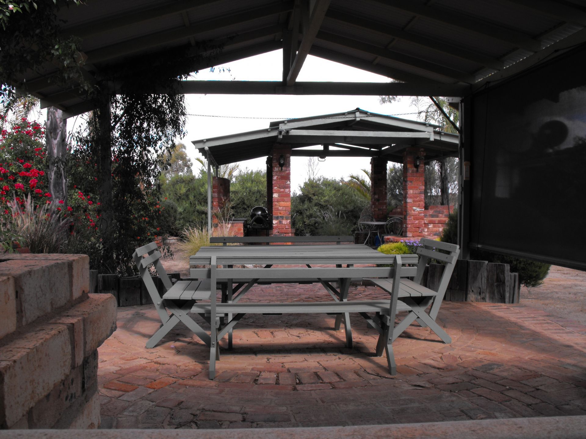 Oasis style gardens front and back bring in the wildlife with birds and echidnas coming to visit. Back garden features two entertainment areas (46.7 sq m) made with beautiful recycled red brick from local farmhouse chimneys, capturing the history of the area. Large jarrah gates made by local craftsman enhance the special feel of this area. Gates are mounted on brick pillars for a bold entrance.