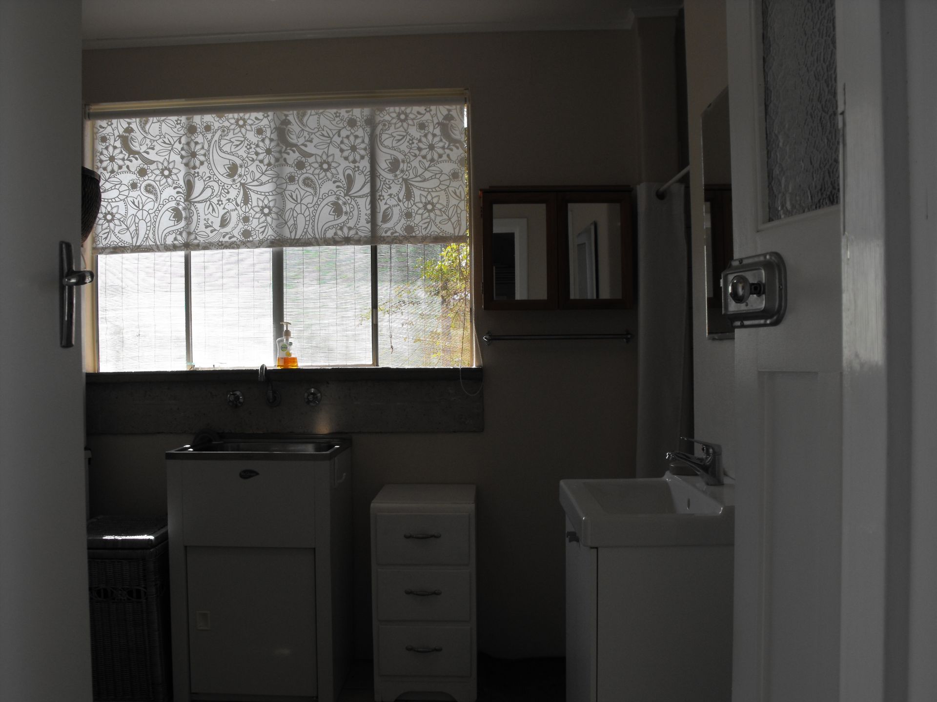 Large laundry room, with separate modern toilet, and additional shower, built in cupboards with plenty of storage, heated wall panel, separate modern hand basin.