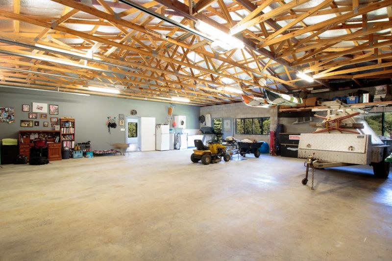 - attached to 150m2,concrete block garage, 12m depth with a ceiling height of 3m, ideal for tradie or retiree with van or mobile home.