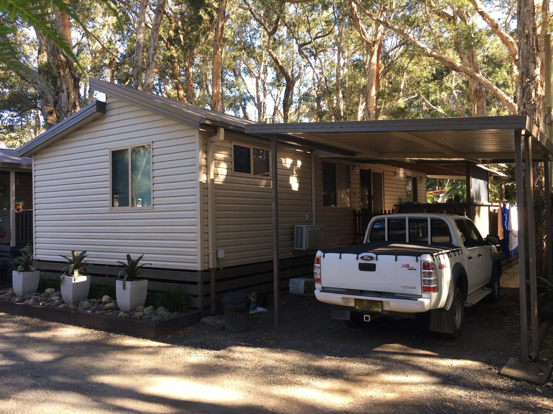 Relocatable home in pet friendly park, 2 min walk to the beach